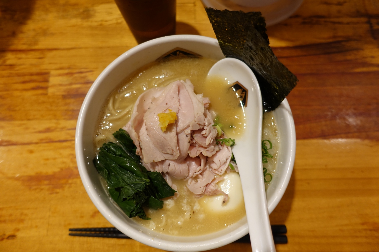 錦糸町駅から南側に少し歩いたところにある真鯛を使ったらーめんのお店です。素材にこだわりつつもここならではの味を楽しめることがポイントで、スープは宇和島産の真鯛から作られています。らーめん、つけ麺とも+50円で濃厚を選ぶことができ、こちらを選ぶとしっかりと真鯛を味わうことができます。今回はらーめんのみを大盛でいただきましたが、雑炊セットを付けるのもおすすめです(過去にいただいたことがあります)。