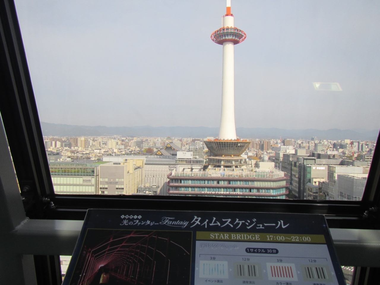 途中、駅外の景色を眺めることができ、背後に京都盆地の風景広がる京都タワーを正面から眺めることもできて良いです。