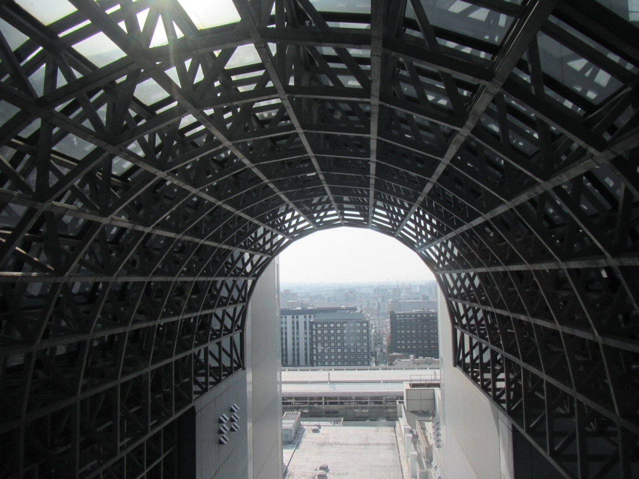 京都駅改札前広場上に広がる巨大な吹き抜け空間の上を跨ぐスカイウォークで、初めて京都駅に降り立つなど、京都駅のデカさに圧倒されたなら、ぜひ空中径路も歩くと少々スリルも味わえて楽しめるのではないでしょうか。