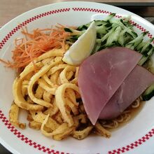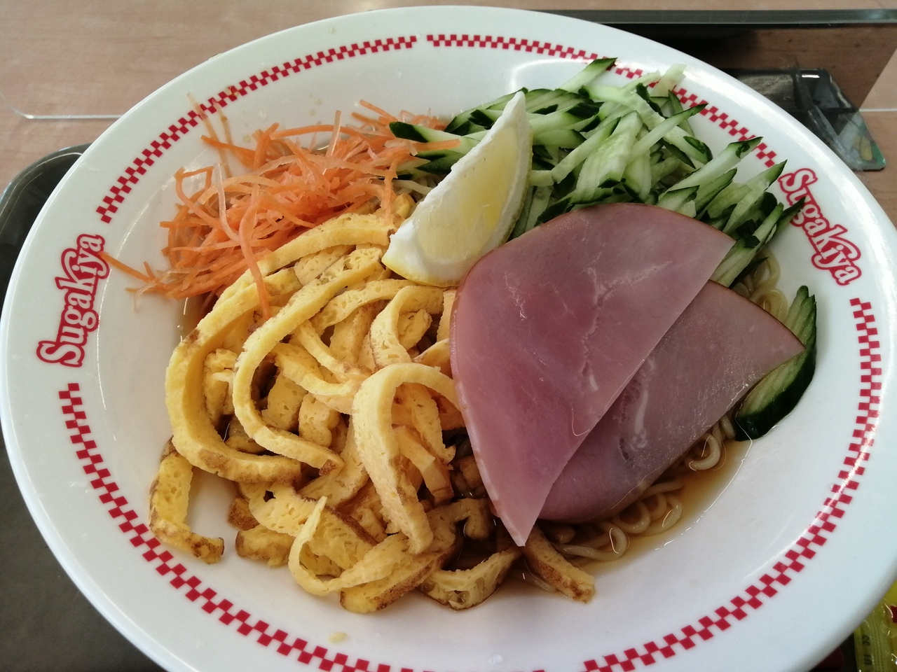 季節限定メニューの「冷しラーメン」(520円)を食べてみました。冷やしラーメンとは?と思いましたがただの冷やし中華でした。お味は普通です。ラーメン1杯360円に比べるとコスパが悪いかなと。それと悪気はないと思うのですが麺の下に氷がじゃらじゃら。なんか上げ底みたいで損した気分になりました。