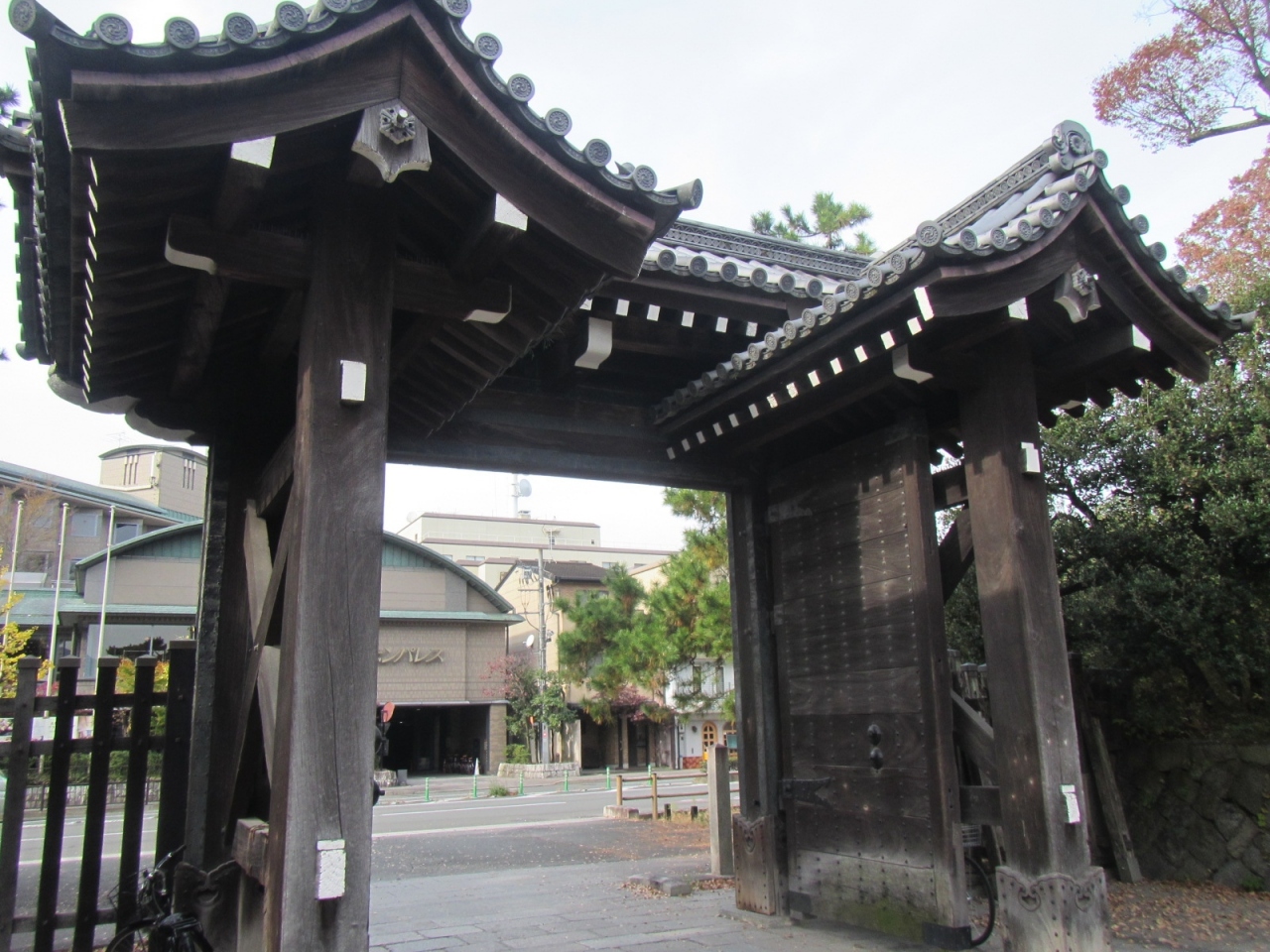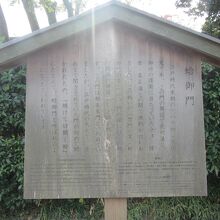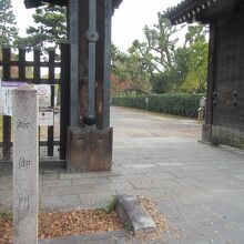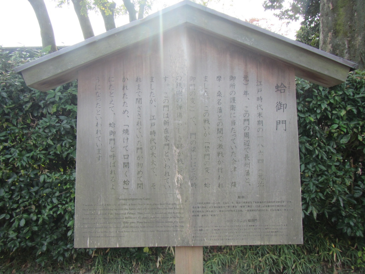 今から150年程前の幕末の動乱の際、禁門の変の主戦場となった場所で、門の近くには解説板も立っています。