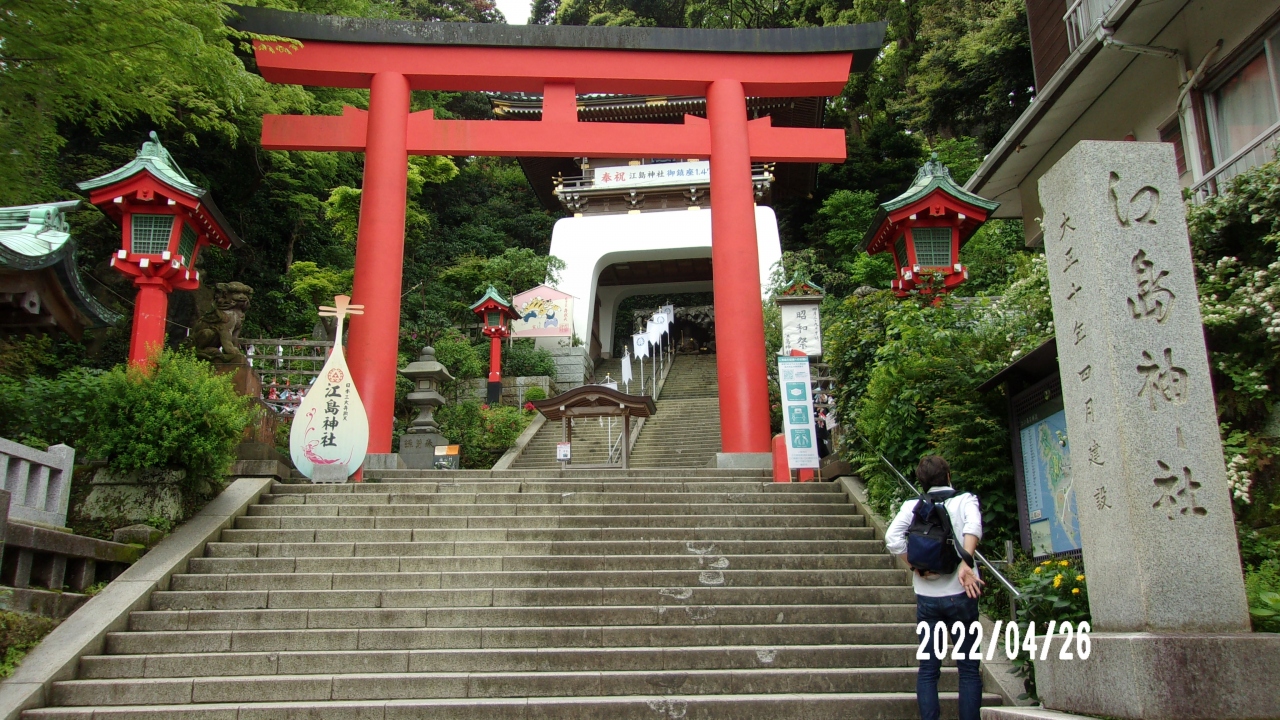 この江島神社は三宮と西側にある江の島岩屋とでなっています。入り口が青銅の鳥居です。そこまでは小田急線片瀬江ノ島駅から南に10分強の場所にあります。鳥居からは山全体の神社の神殿等があります。そしてこの神社の起源である岩屋が西海岸にあります。6世紀中ごろに岩屋に神を祀ったというのです。そこまでは道も険しく参拝でも一日がかりのような場所だったのです。今も神社は信仰の場となっています。