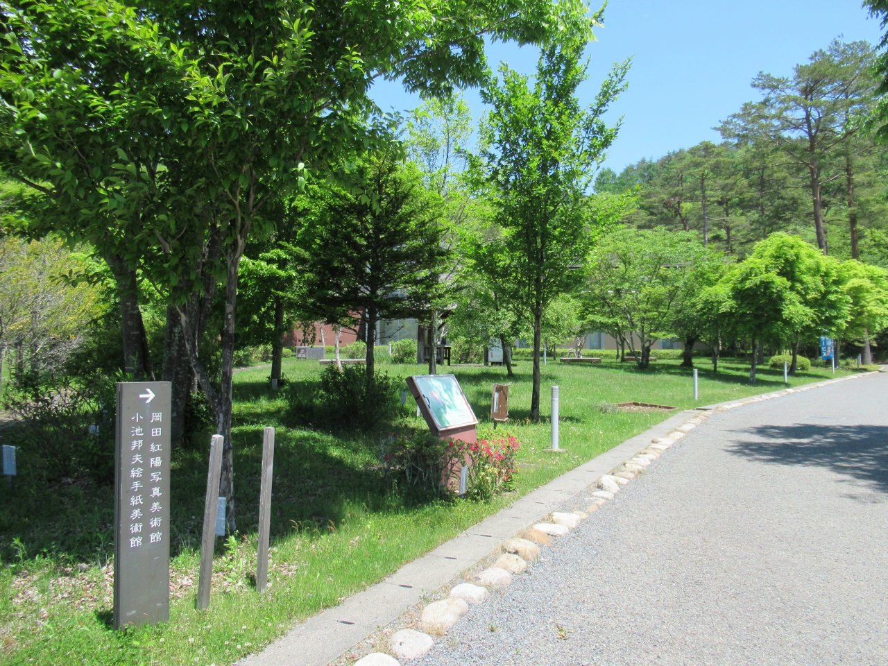 四季の杜おしの公園内に建つ絵手紙美術館です。館内には絵手紙の創始者・小池邦夫さんの作品が数多く展示されています。普通サイズの小さな絵手紙から、大きな芸術サイズの絵手紙まで、迫力と優しさが感じられる作品が並んでいます。今でこそ絵手紙は日本中に広がった、どこでも見られる一般的なアートになりましたが、その発想と先駆的な役割を果たした小池氏の創作力に驚かされる美術館です。