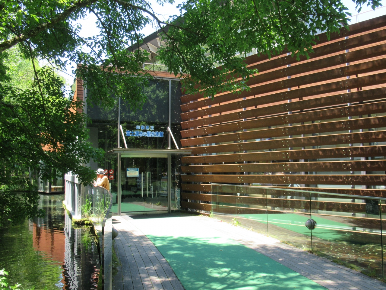 富士山の湧水や地下水を利用したさかな公園内に造られている、川や湖に棲む淡水魚の水族館です。館内には大きな魚と小さな魚が一つの水槽の中で泳いでいるように見える二重構造の水槽や湖の底をイメージした水槽、川の源流から中流までの魚の生態を再現した水槽など、魚の鑑賞が好きな人には面白い水族館です。外にある透き通った水の水槽には、丸々と太った魚たちが気持ちよさそうに泳いでいました。都会の濁った川や池で泳ぐ魚に比べ、きれいな水の中で泳ぐ魚たちを羨ましく思いました。