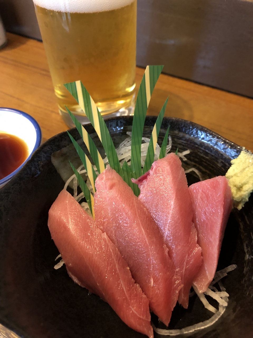 瓶ビール(大瓶)をもらって、刺身…刺身は「上まぐろ中トロ」をもらった