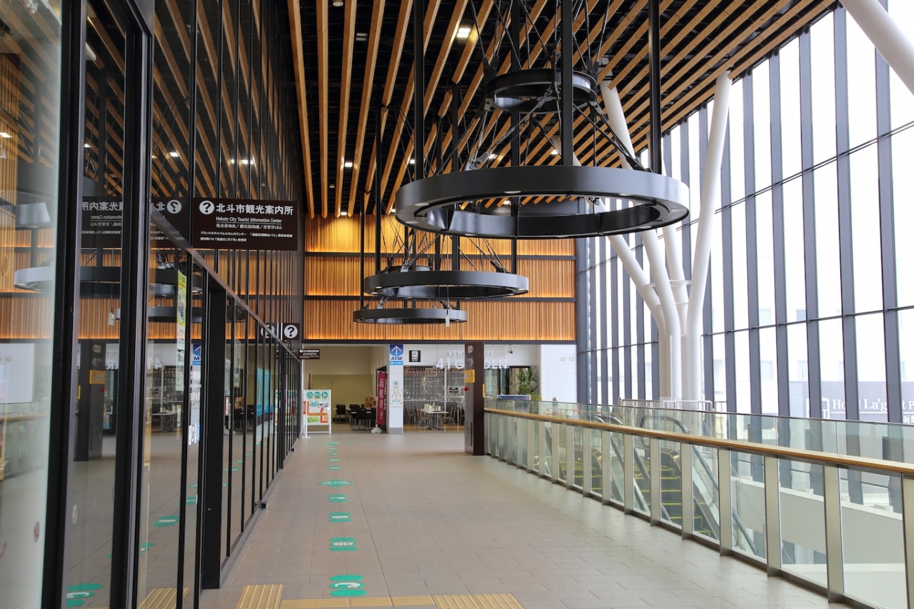 北海道新幹線の現在の終着駅です。函館駅からはJRのはこだてライナーで20分前後で結ばれています。駅前からはバスが発着しており、函館市街の他、七飯町にも繋がっています。