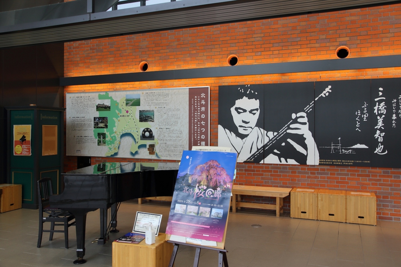 駅舎そのものは新しいだけあって綺麗で、観光案内所や観光交流センター観光案内所やアンテナショップなどが入っています。1階にはギャラリーもあり、『北斗』にちなんで『北斗の券』のケンシロウ像が設置されています。ただ、ギャラリー自体が小さく、ケンシロウ像もそれほど大きくないので注意して探さないと見落とすかもしれません。