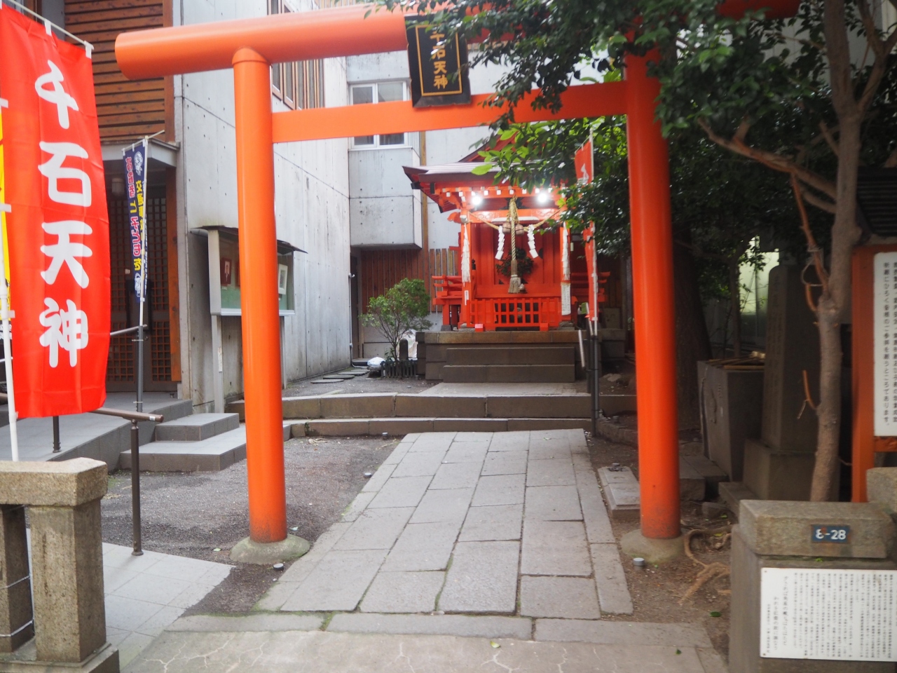 天文館の中心部のアーケードを歩いていて、西に歩いて行くとアーケードを抜けた場所に千石天神はあります。朱色の鳥居と朱色の小さな社があるのが千石天神ですが、その色合いで目を引きます。天神という名前が付いているように菅原道真を祀った神社で学問成就や商売繁盛の神社のようです。観光スポットというより地元の信仰ある神社のようです。