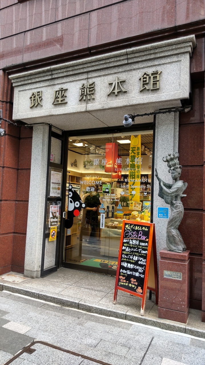 各県が展開するアンテナショップの一つ。熊本のアンテナショップには、一般のお土産物と、二階にはくまモングッズも並んでいました。