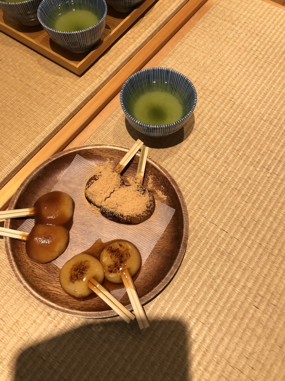 畳の座席が用意されていて、そこに座ってお茶をいただきながら食べる事ができます。