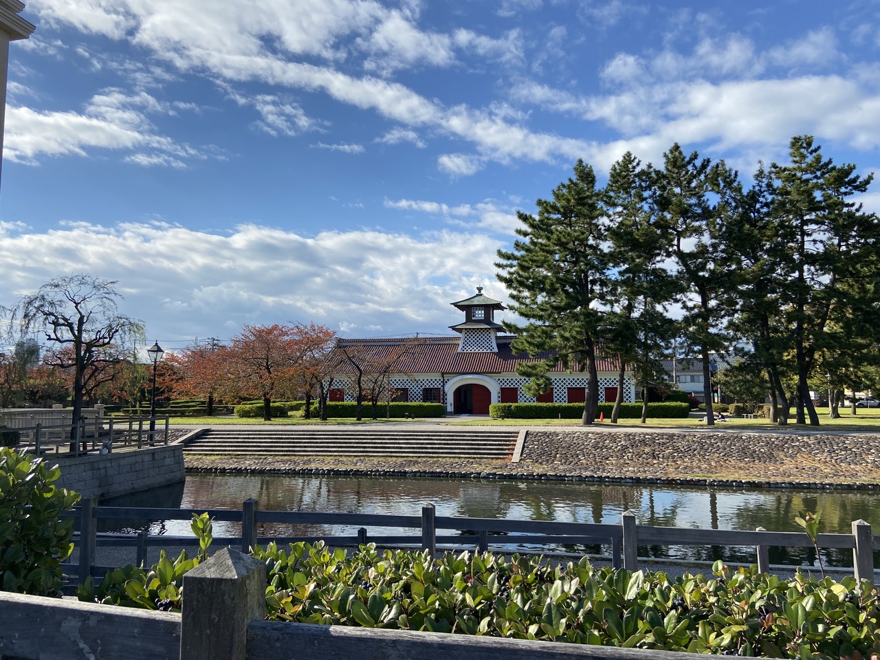 行きたいお店があったので観光循環バスにて博物館前で降りました。ふと横を見るとなぜか気になり立ち寄ってみたら、広々したとした庭園が。あまりにも綺麗で、清々しい風に心地よかった。庭から見る建物も素敵です。隣の信濃川には佐渡汽船の船がゆったりと進んでいきます。素敵な景色にうっとりです。