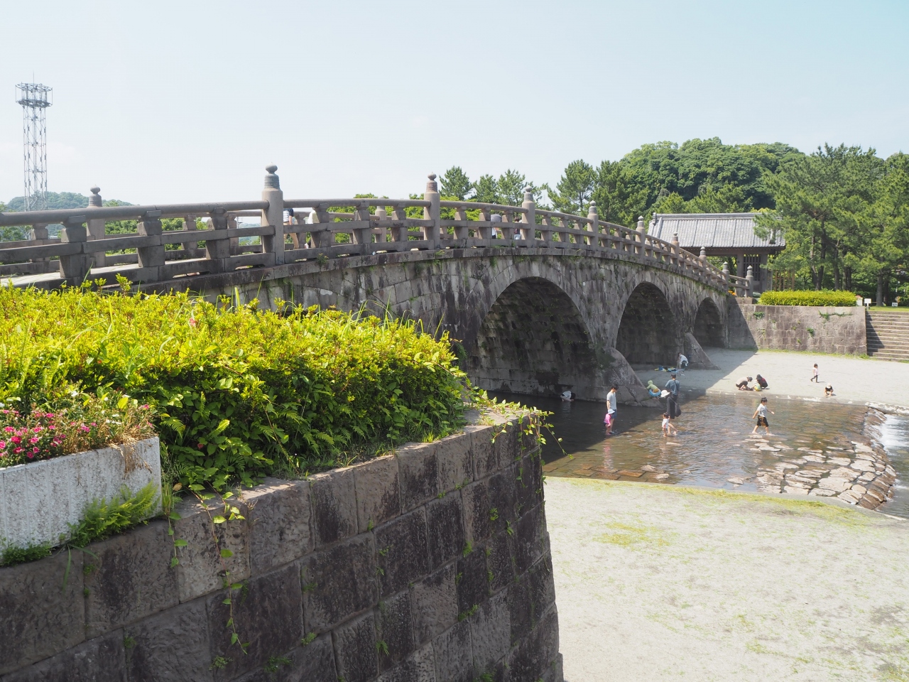シテイビューバスの停車場があったので、仙厳園の観光後にこちらに立ち寄りました。鹿児島中央駅近くに架かっていた歴史ある橋が甲突川の増水などで損傷することを避けるためにこちらに移設されています。移設された橋は歴史を感じる素晴らしい橋です。石橋記念公園を歩いていると境目がないのでとなりの祇園之洲公園まで歩いていました。両方ともに整備された美しい公園です。
