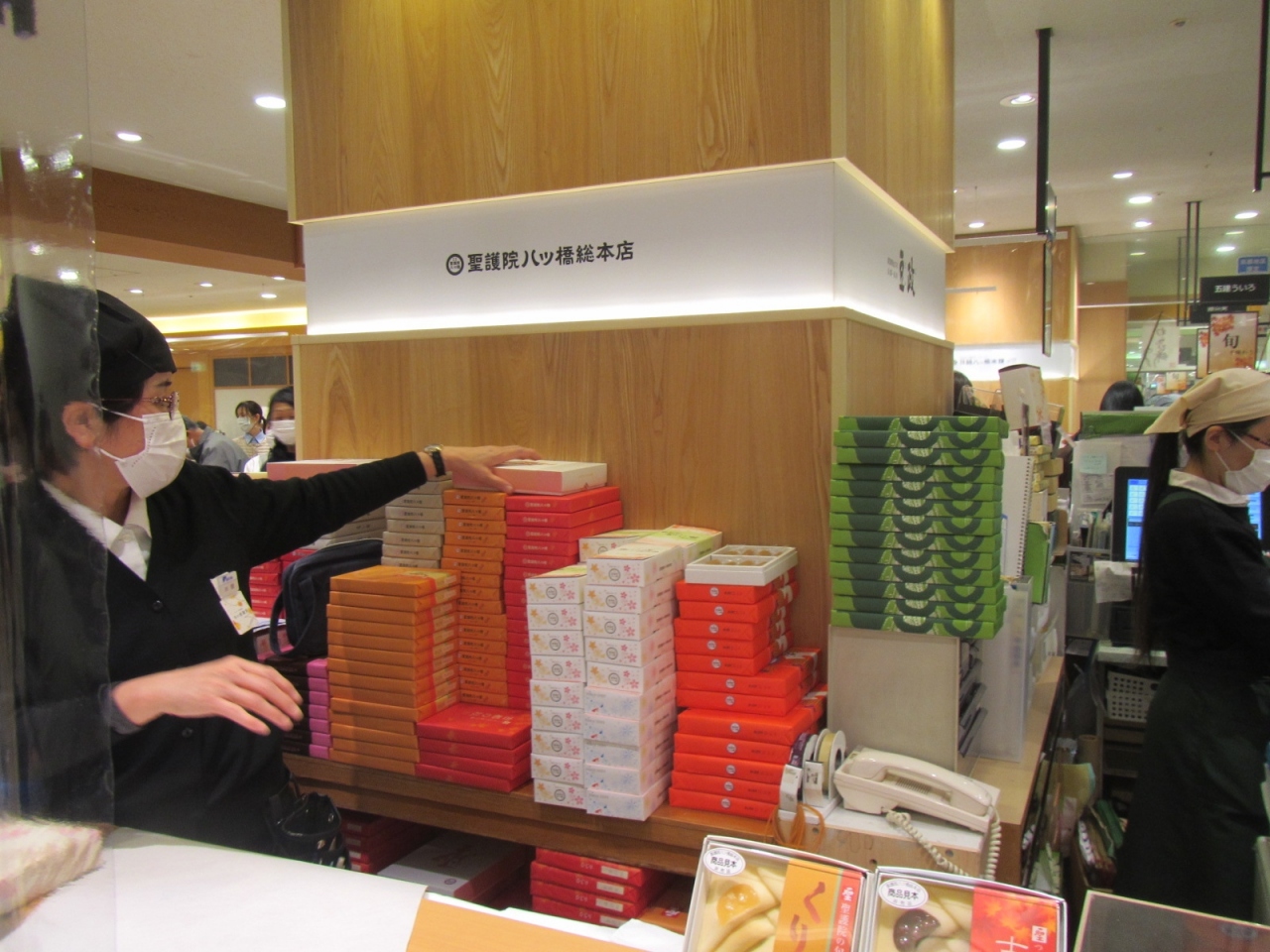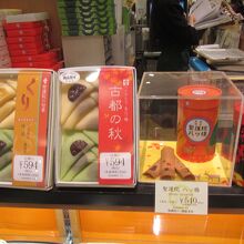様々な餡の味が出ている生八つ橋のほかに、こちらでは通常の八つ橋も、胡麻、しょうが、黒糖、抹茶、珈琲などの種類がありました。