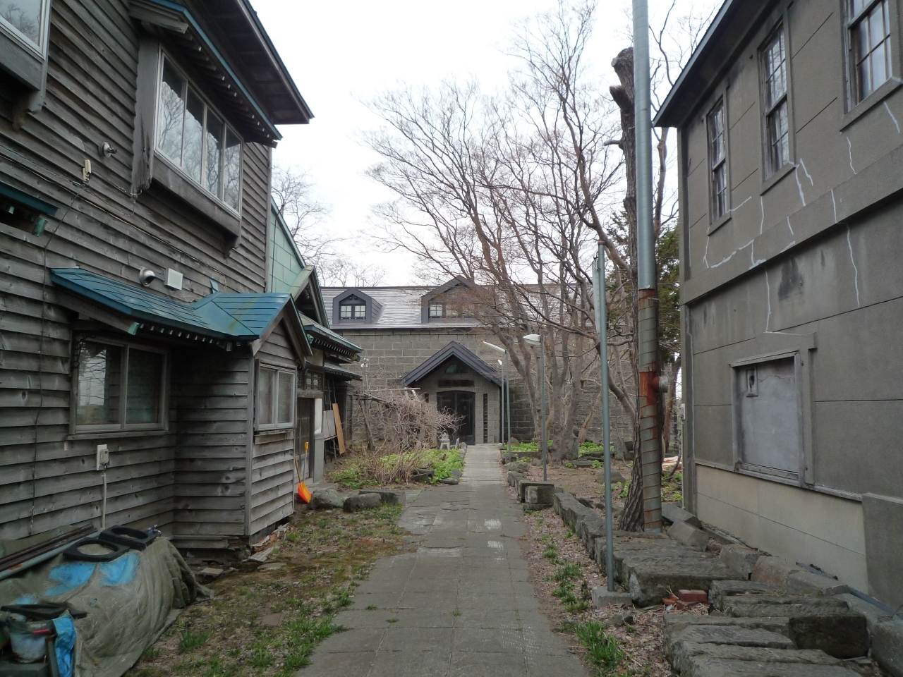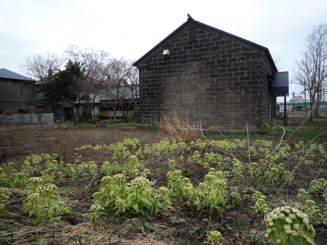 JR江別駅から右へ歩いて5分もすれば千歳川の堤防に出ます~、史跡・石狩汽船の碑が立つ広っぱにポツンと古ぼけた石造りの倉庫が「旧岡田倉庫」と言って明治開拓期から昭和に掛けた舟運の町・江別港を支えて来た証しがこの岡田家の家屋や倉庫です。
