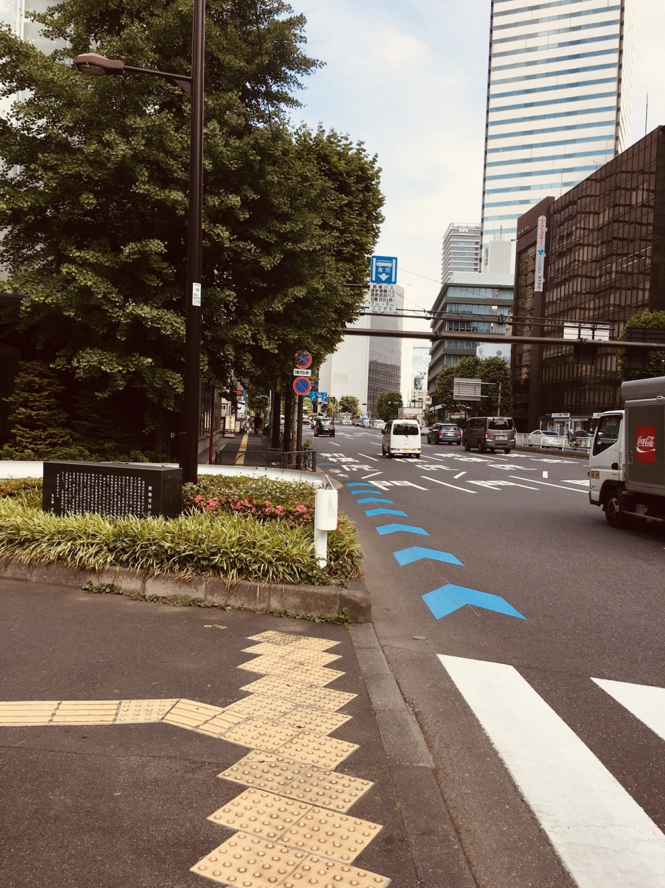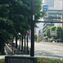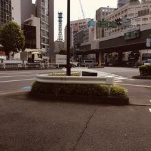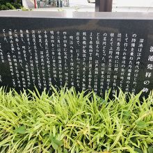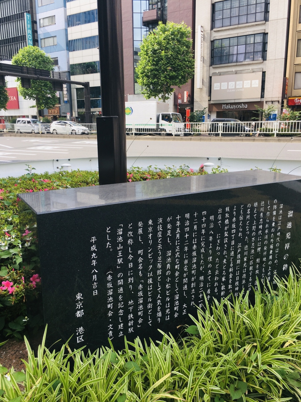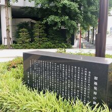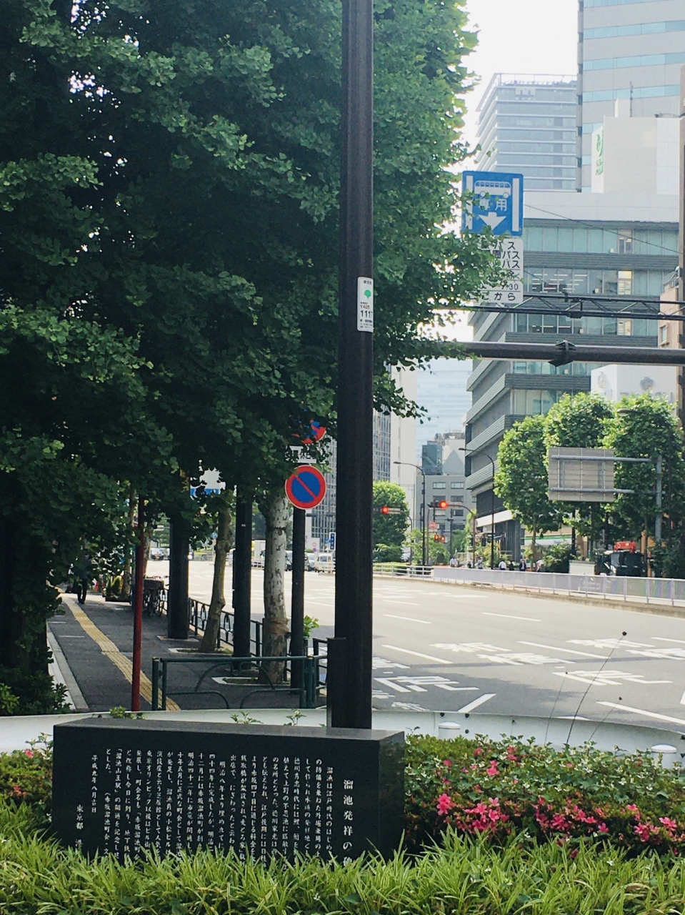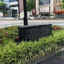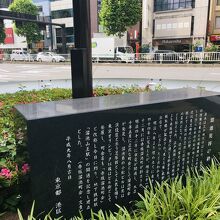 横断歩道に挟まれたような場所に横たわったような石碑でした。黒い石碑で白文字で、江戸時代には防備を兼ね備えた外堀だった場所で、魚もいて名称だったようです。石碑の後方にはガードレールがあり、ミニ花壇のようになっていました。
