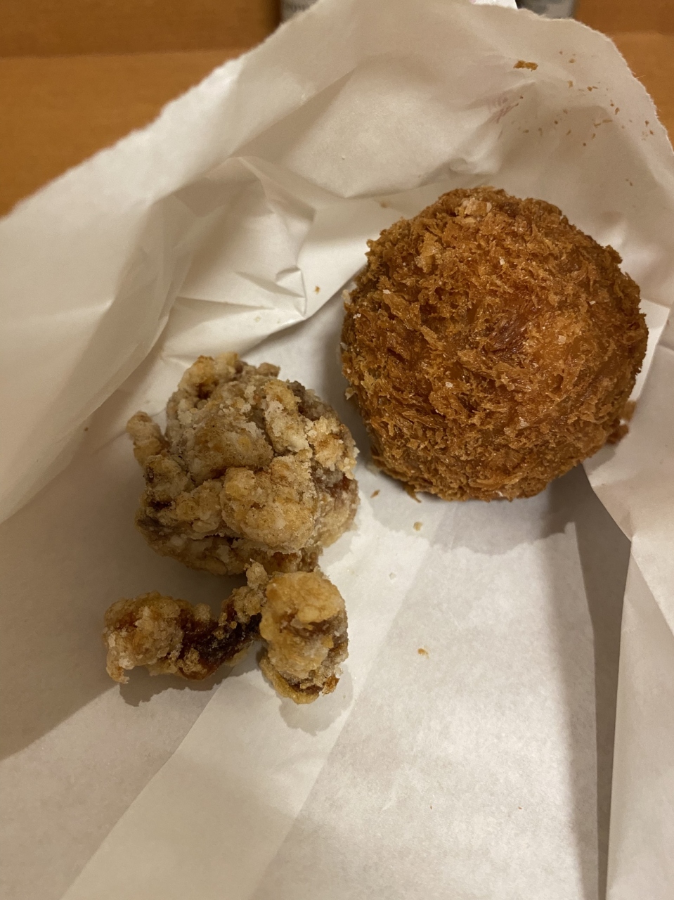 コロッケ、メンチカツ、唐揚げ、オニオンリングなど揚げ物惣菜がいつも熱々です。
