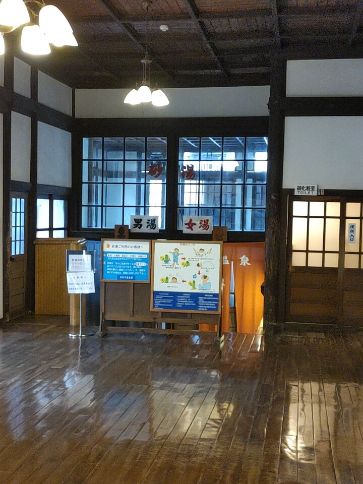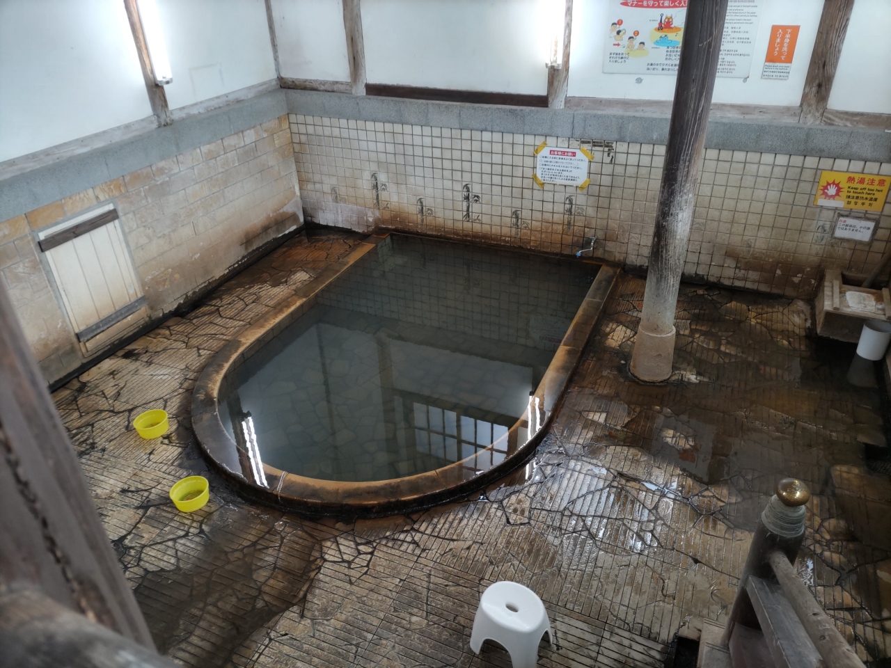 レトロな建物、昔懐かしい内部の雰囲気、47度の源泉の一つの浴槽、