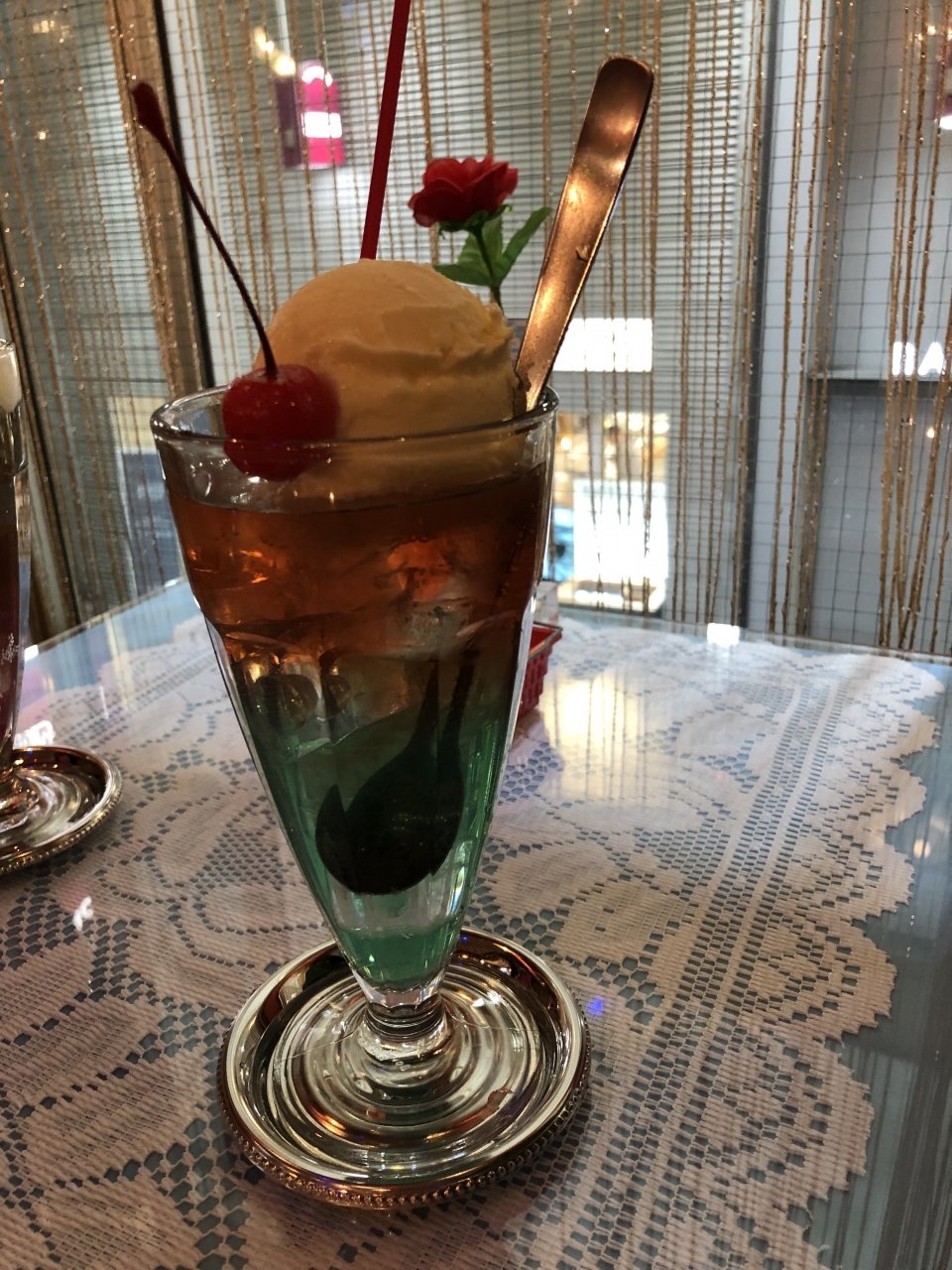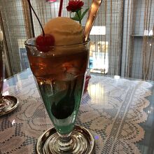 クリームソーダの専門店です。まず、内装がポップでかわいい。ソーダの種類が多くて、2種類でも可能です。2色が混ざらないで2層になって出てきます。飲んでるうちに混ざってきちゃいますが。請求書の裏にスタッフさんが手書きのメッセージを入れてくれるのもこの店ならでは。