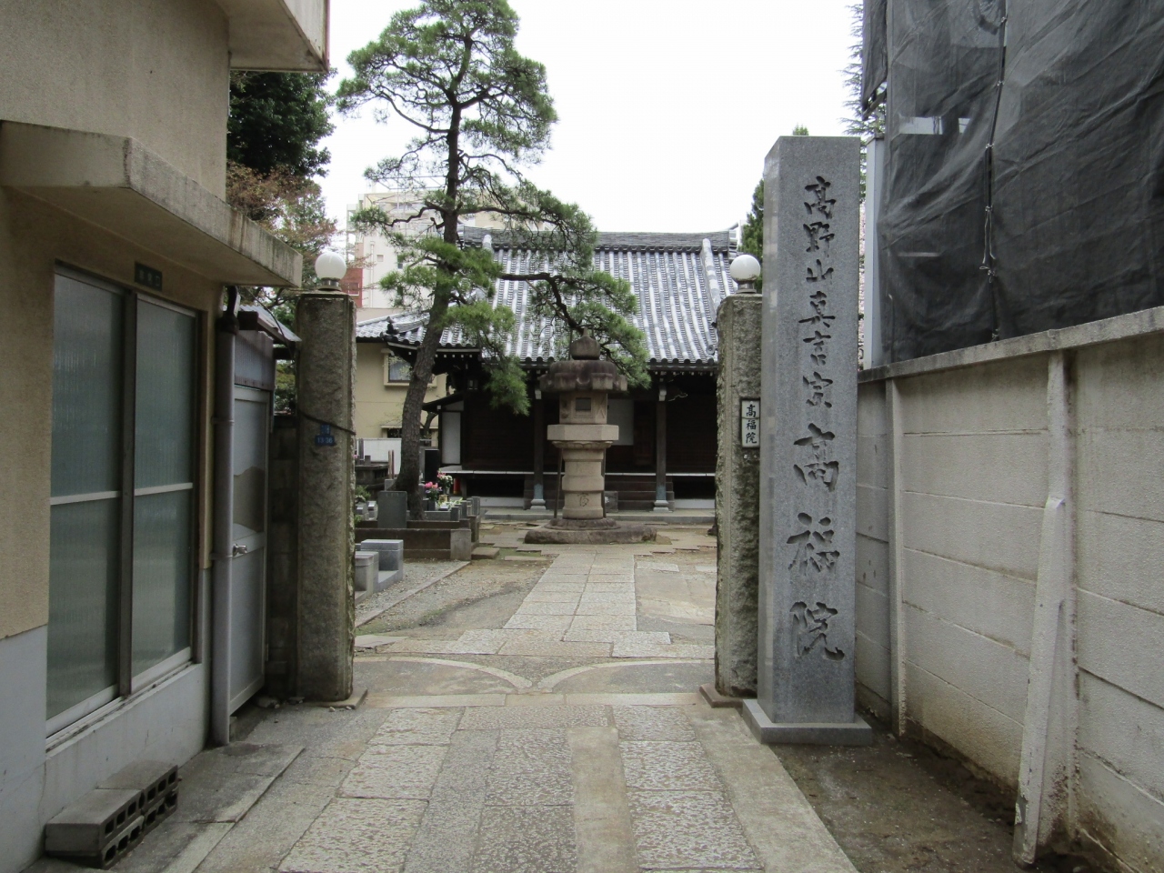 目黒駅から高輪方面へ徒歩3分ほど、目黒通り沿いにある誕生八幡神社の脇道が高福院の参道で、一段低い境内に入ると静かな空間が拡がります。