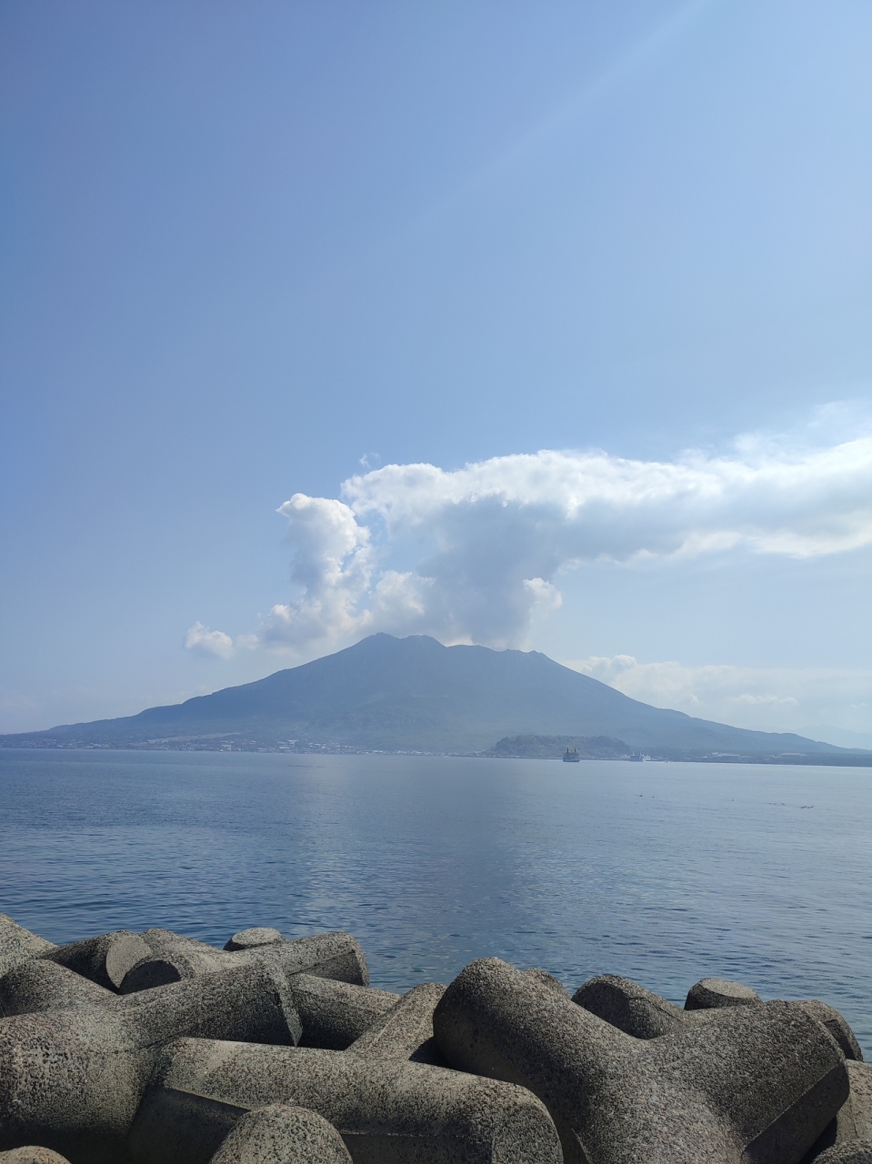 鹿児島を代表する名勝地の桜島は当然ながらいろりろな場所から望むことができますが、祇園之洲公園を散策していた際にも錦江湾越えに綺麗な姿を望むことができました。我は海の子の歌碑がすぐ近くにあったのですが、インスパイアされる気持ちもわかる風景でした。