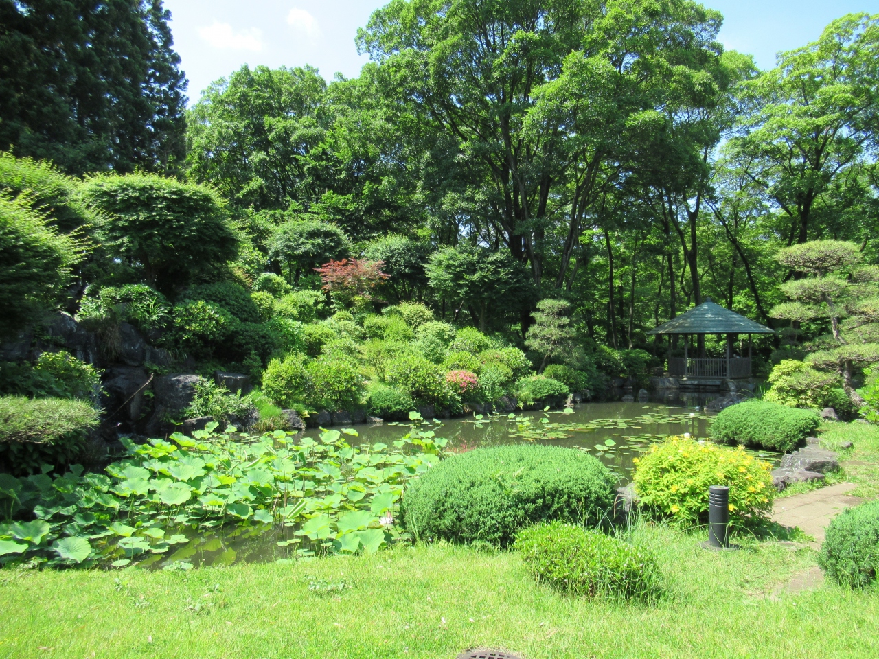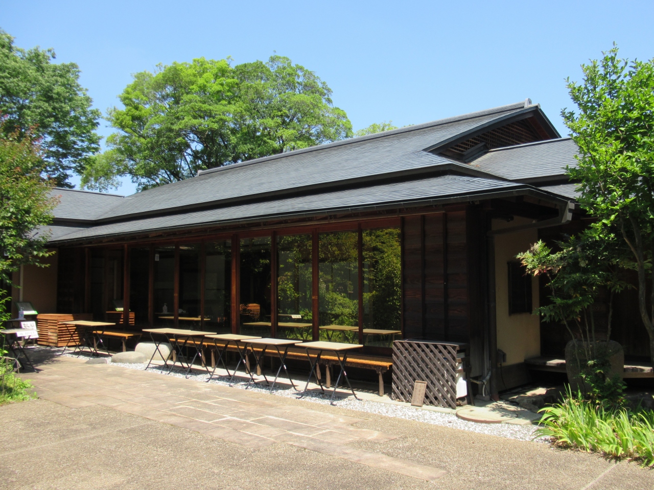 日本で最初の飛行場・所沢飛行場の跡地に造られた、所沢航空記念公園内にある茶室兼茶飲み所です。茶道や句会などの活動に利用できる一方、お茶やフロートを味わえる喫茶室として営業も行っています。建物の周りは池にコイが泳ぎ、松やツツジ、竹林など緑に囲まれた日本庭園になっていて、テラス席や東屋もあり、池に流れ入る水の音を聞きながら、のんびり過ごすことができます。混雑することもなく、庭園を独り占めしながらお茶を味わうことができました。