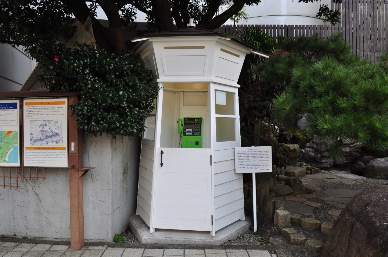 2022年1月に熱海に観光に行った際に立ち寄りました。JR来宮駅から徒歩10分ほど、ニューフジヤホテルアネックスの北側にあります。白い電話ボックスの中にお馴染みの緑色の電話が置かれています。熱海が温泉街として発達すると、熱海には政治家などの権力者が静養に訪れるようになります。このため、東京都の通信(電話)をする必要性が出てきたため、明治22年(1889年)に東京-熱海間で電話線がひかれ、公衆電話として利用されたのが日本における市外通話の始まりだそうです。東京-横浜間で電話交換業務が始まったのが約2年後の明治23年(1890年)12月とのことですので驚きました。なかなか面白い歴史を知ることができて良かったです。