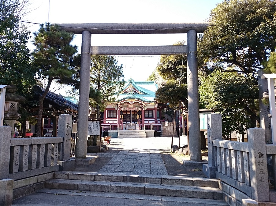 JR総武線平井駅から徒歩5分程度、江戸川区平井6丁目の旧中川近くに鎮座している神社です。江戸時代の享保年間(1716年~1735年)の創建と伝えられています。東京23区内でもこの辺りはのどかで、いかにも【村の鎮守さま】の雰囲気の神社です。