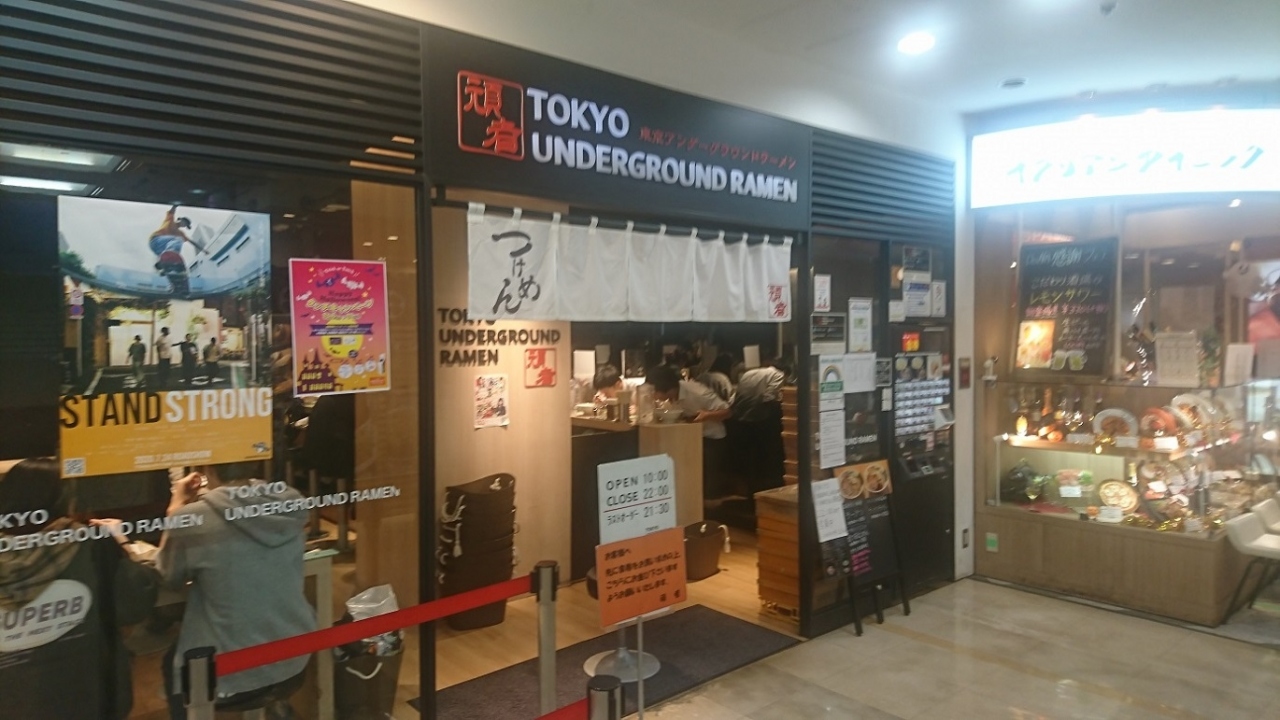 池袋駅西口地下の東武ホープセンターレストラン街にあるつけ麺屋さんです。ランチでラーメンをいただきました。具はメンマ、長ネギ、ナルト、チャーシュー、魚粉で、つけ麺屋さんらしく麺は極太麺で、魚介系の味の強い豚骨スープの一品です。スープには魚介系と豚骨の旨みを感じ普通に美味しかったです。