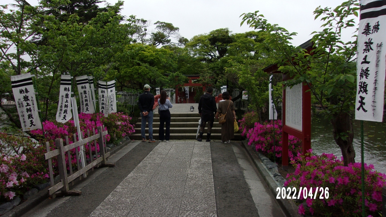 この旗上弁財天社は鶴岡八幡宮の東側にある源氏池にある島の上にたてられています。この神社は北条政子がたてたといわれています。源頼朝が挙兵するときに弁財天が現れてと言われています。家運長久の守護神としての弁財天です。今の建物は昭和末期に再建されました。この社の裏手に政子石が置かれています。