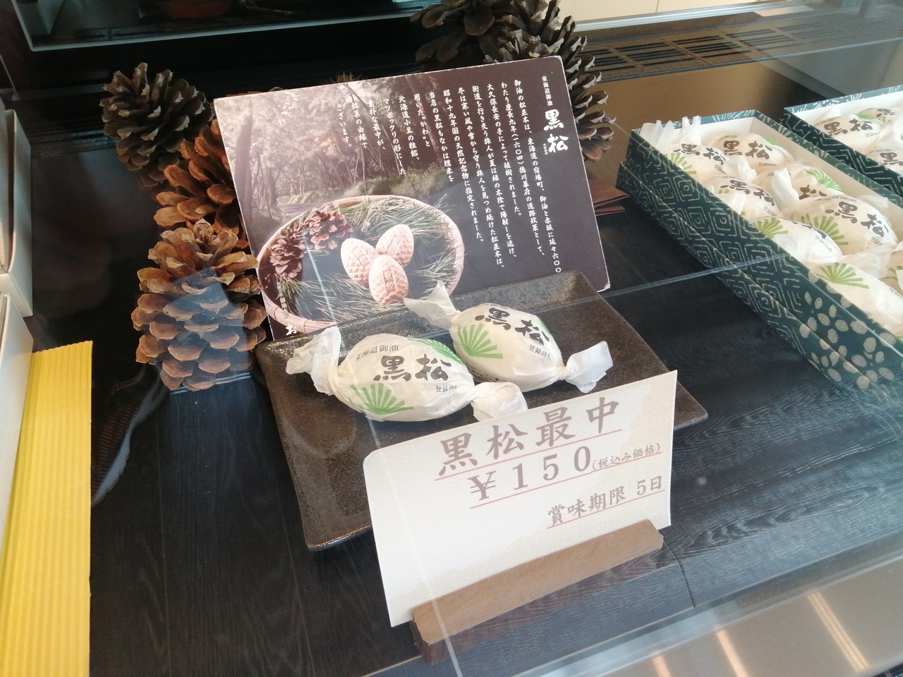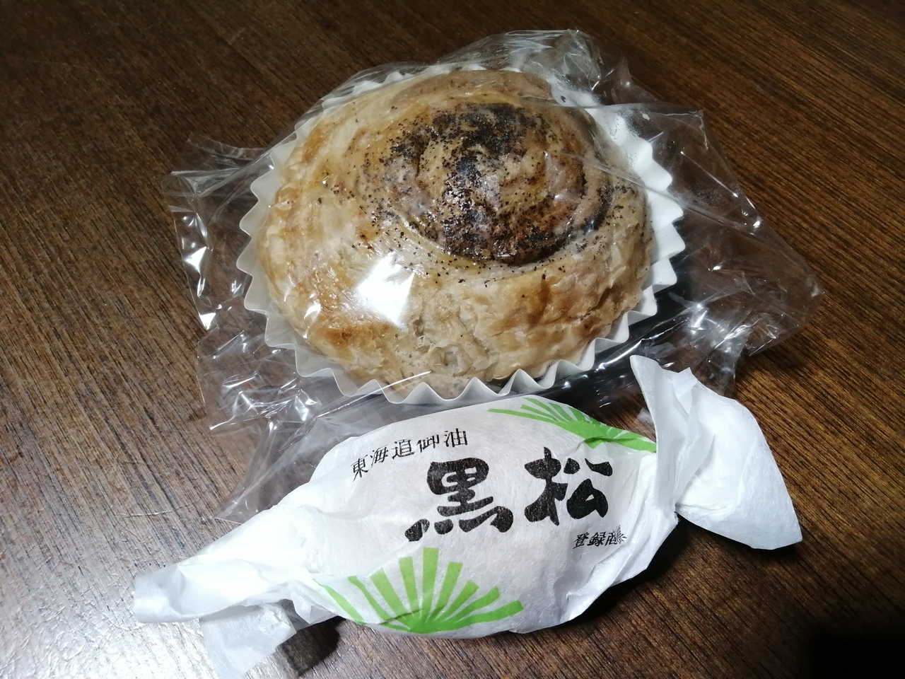 旧東海道御油宿の街道沿いにある和菓子屋さんです。おすすめされた「黒松最中」を購入(1個税込150円)。もちろん御油名物の松並木にちなんだ一品です。最中の皮が松ぼっくりの形をしていました。やや小ぶりですが食べ切るにはぴったりのサイズ。中のあんこもほどよく甘く、とってもおいしかったです。和菓子屋にも関わらず菓子パンも販売しています。「和紅茶のデニュッシュ」(税込130円)もおいしかったです。どのパンも安く、コスパは最高です。