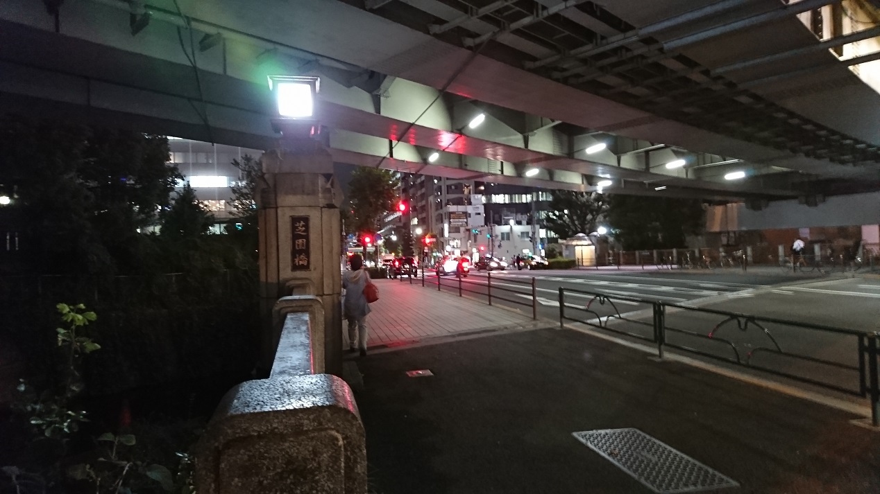都営地下鉄三田線芝公園駅からすぐ、日比谷通りが古川を渡る時の橋が芝園橋です。最初の架橋は大正15年で現在の橋は昭和59年(1984年)に架け替えられたものです。歴史のある橋ですが、現代では古川の上に首都高速道路が通り、残念ながら景観の良い橋とは思えませんでした。