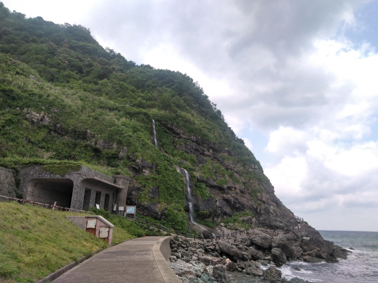 海岸沿いの道路脇にあるので、すぐ分かります。そばに無料の広い駐車場があって、そこからも滝を眺められますが、遊歩道があって、滝のすぐそばまで行く事も出来ます。山から海へ流れ落ちる滝は、とても見応えがあります。