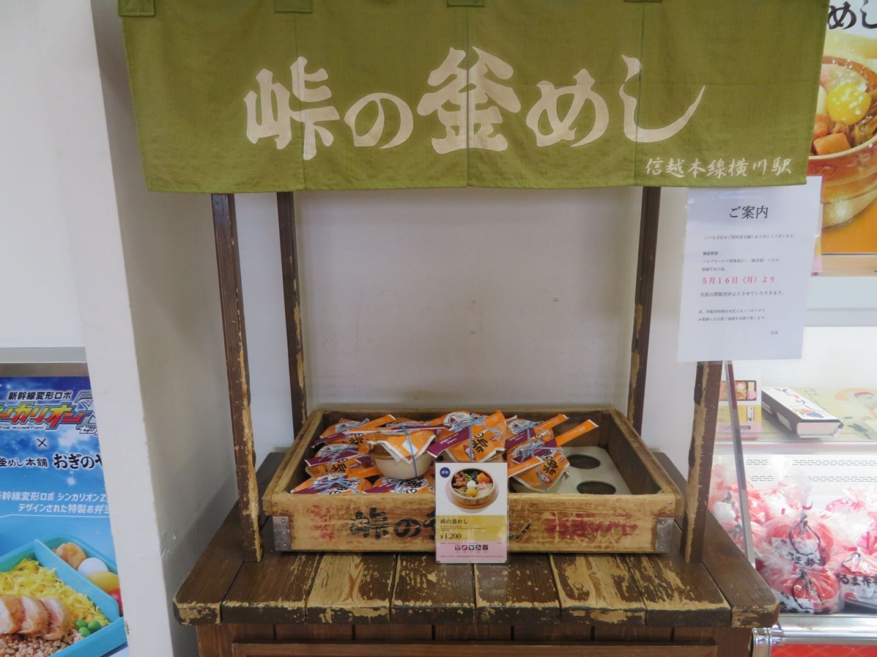 高崎駅改札外の店舗。おぎのやの名物峠の釜めしを