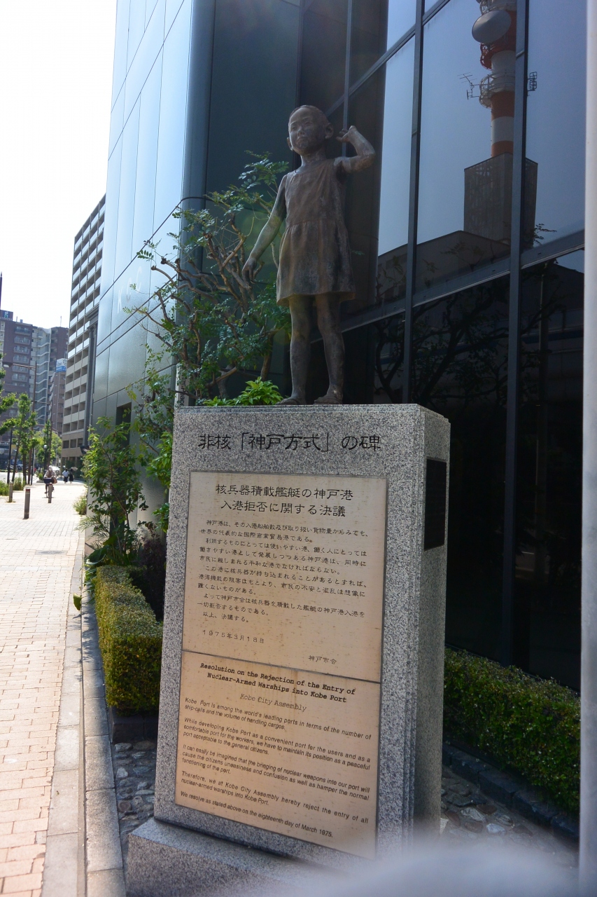 女の子の銅像の下に、文字が刻まれれいます。神戸市会のメッセージみたいなので、神戸市議会が議決したことをモニュメントにしたということですかね。1975年ということなので、時代的なものが感じられるような気がします。