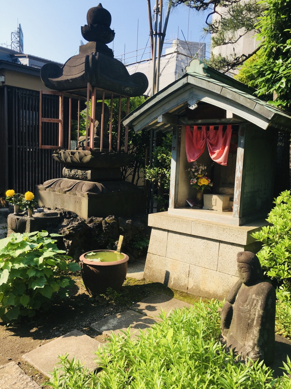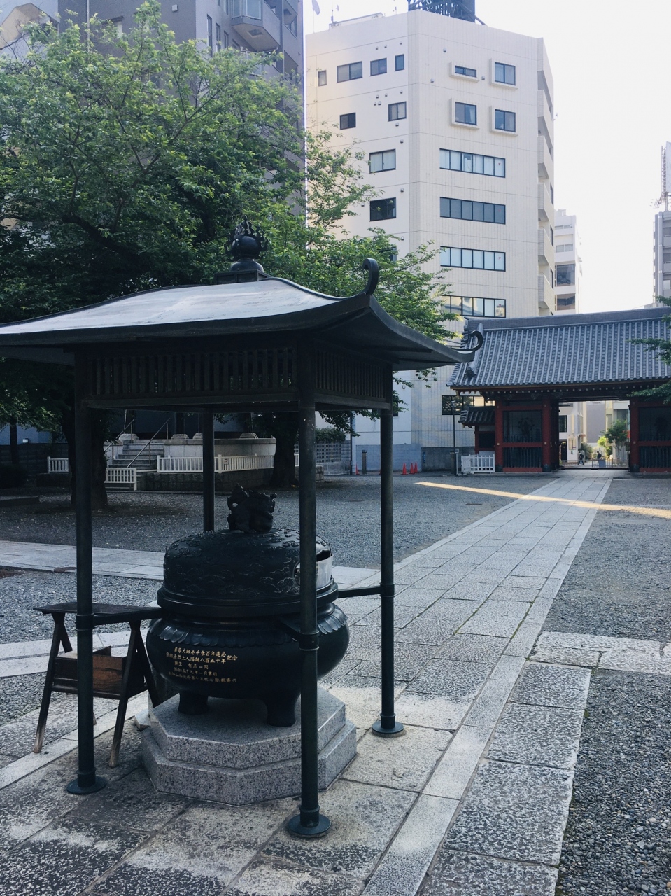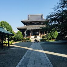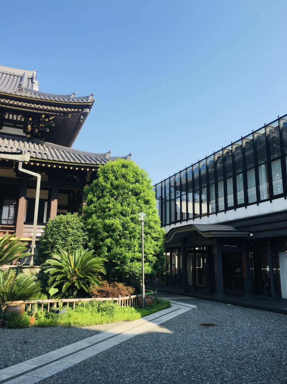 青山通りからほんの少し逸れたところにありました。門には仁王像が配置され境内右側には大きな鐘がありました。正面には長野善光寺のそっくりな本堂がありましたが小さめでした。ビルに囲まれたような境内でしたが静かな寺でした。