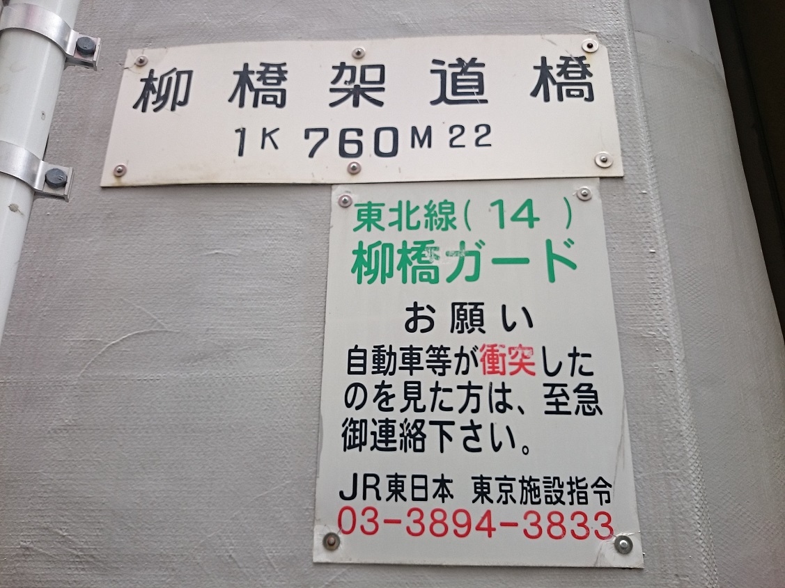 架道橋とは道路や線路の上をまたぐように架かっている橋の事で、柳橋架道橋はJR秋葉原駅から徒歩5分程度、細い道路をまたいでいるJR線路の橋です。最初の架橋は大正14年(1925年)で、この辺りでは赤レンガは使われていないようです。