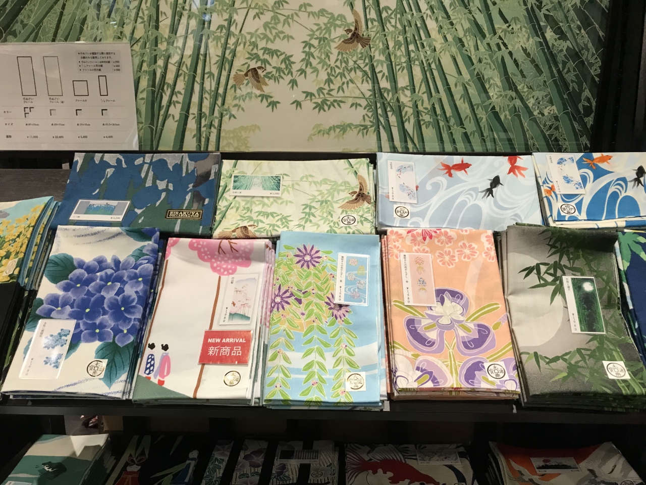 永楽屋 細辻伊兵衛商店は、江戸初期の元和元年(1615年)創業以来、十四代続く日本最古の綿布商です。手ぬぐいや結ぶとバッグになる風呂敷など、いかにも京都らしい柄の商品がたくさん販売されていて京都土産にどれを買おうかと目移りしてしまいました。人にプレゼントすると大体喜ばれるので、特に手ぬぐいなどは京都土産としておすすめできます。特に海外の現地スタッフの方には好評でした。