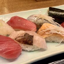 すすきのメルキュールホテル2階のお寿司屋さんで、ここは、回らない回転寿司店です。花まるランチ1639円。寿司8貫と、天ぷら、ミニサラダ、ミニそば、茶碗蒸し、汁物、デザート。寿司は、食べたい8貫を自分で選べます。内容、コスパ共に、満足です。