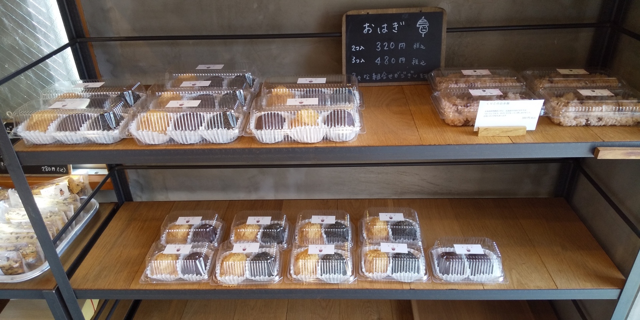 おはぎの他に赤飯、クッキーやアイスモナカなどがありました。