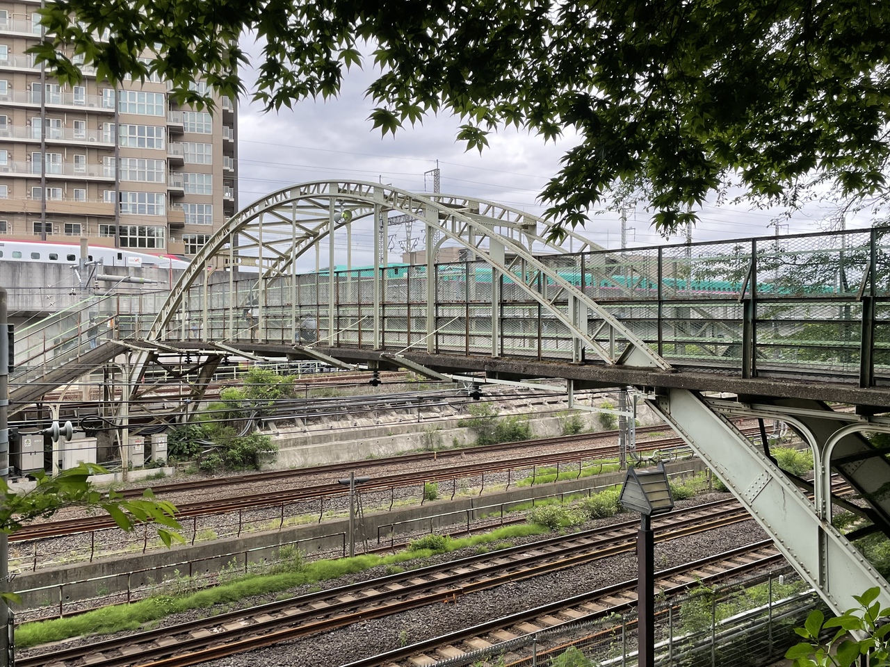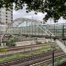 王子駅南口と飛鳥山公園を結ぶ跨線橋です。大正14年にできた古線路を利用した美しいアーチ橋です。下を走る東北線や京浜東北線の電車を眺めることができます。跨線橋より一段高い高架線を走る新幹線も眺めることができ、家族連れでにぎわっていました。