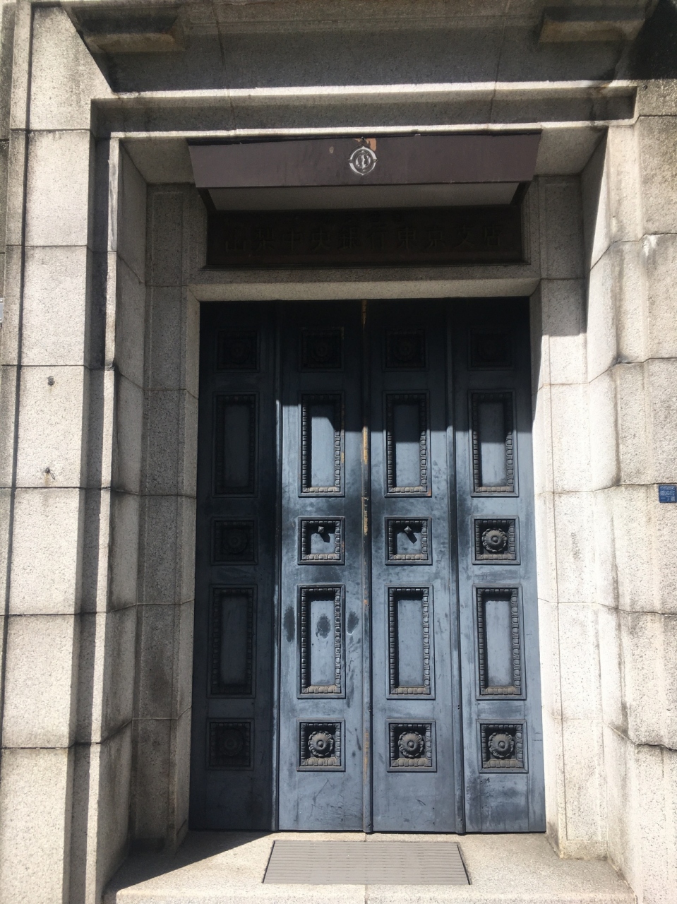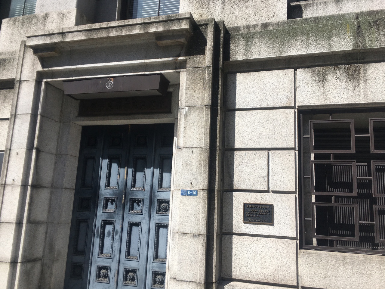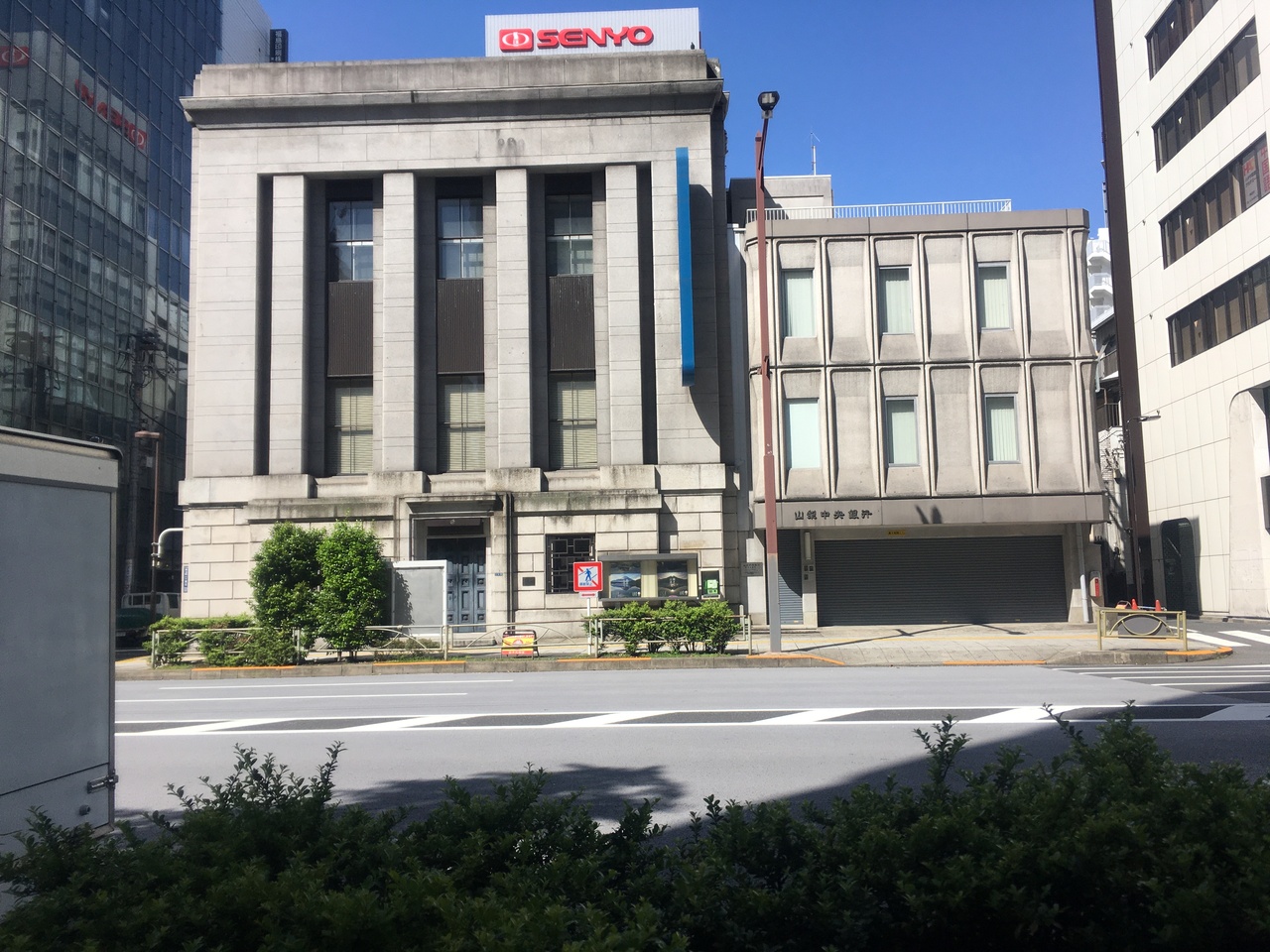 JR神田駅東口から徒歩で3分ほど中央通りを南下したところに建っています。昭和6年築、鉄筋コンクリート製の3階建てのビルです。設計は佐賀の徴古館を手がけた徳永傭氏です。他にも銀行建築を数多く手掛けています。コンパクトながら近代的なスマートさを感じる手堅い建築物です。