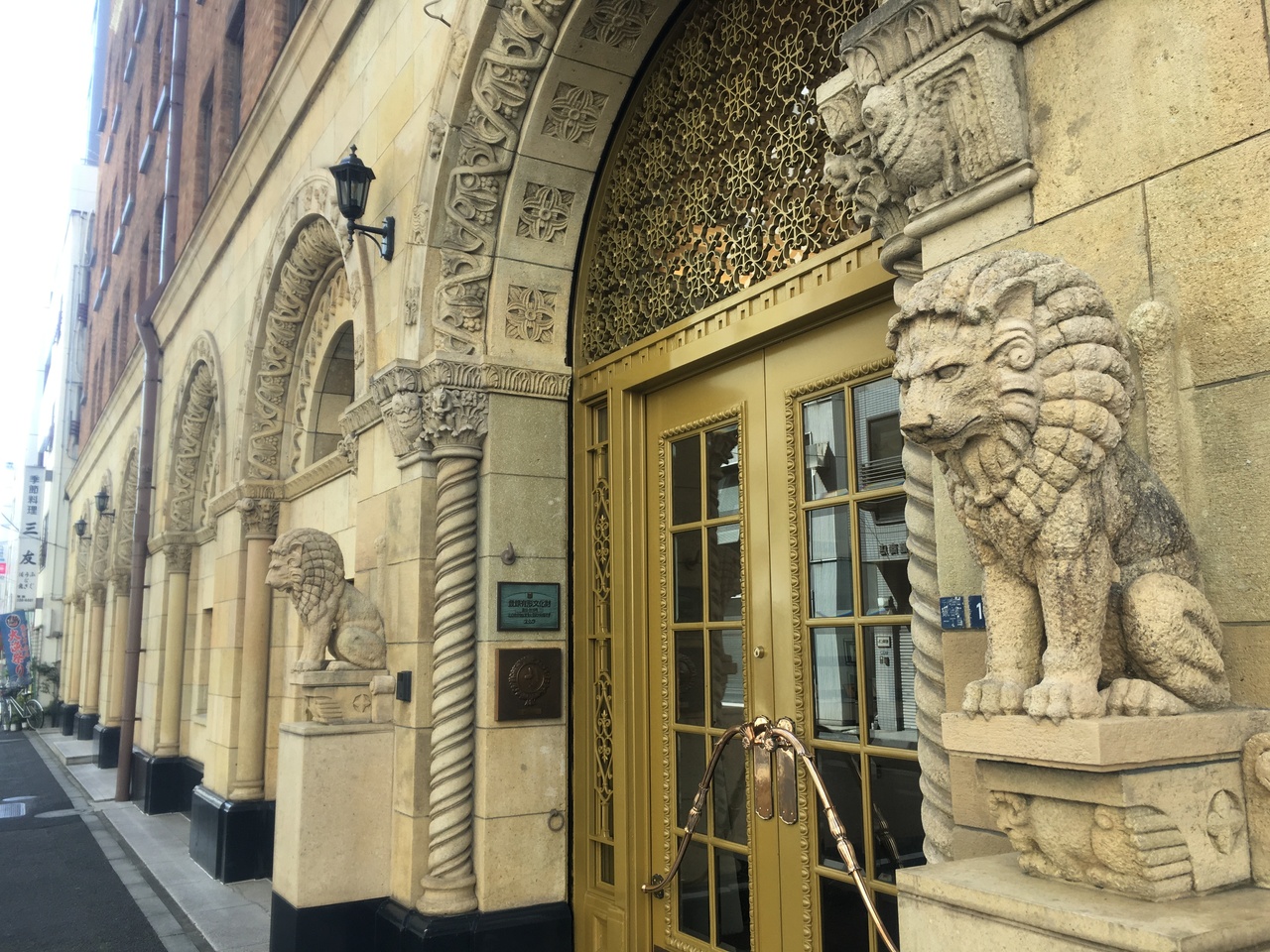 JR神田駅から徒歩で5分ほどです。昭和6年に竣工した「太平洋商会」の地上6階建て近代ロマネスク様式の豪華なビルです。設計は、あの日本最初の超高層ビル「霞ヶ関ビル」の設計者山下寿朗です。裏通りに面した正面玄関の一対の獅子像、ビルの周囲に施された動植物のレリーフの装飾などまるで美術品を見ているようでした。このようなビルが今尚、現存し業務に利用されていることに驚きを感じました。今回は外観のみの鑑賞でした。