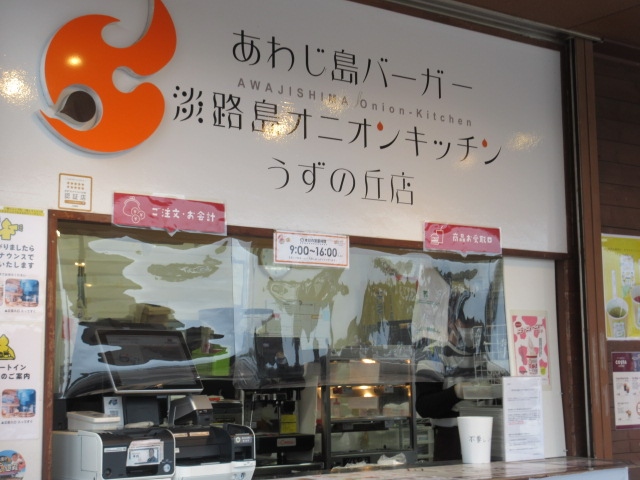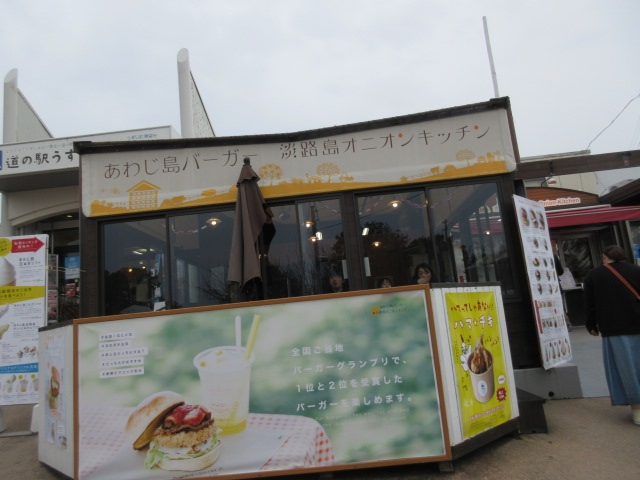 淡路島で有名なお店です。本店は道の駅「うずしお」にありますし、もう一つ、「うずの丘」という場所にもお店があるので便利です。淡路といえばオニオンということで、全国バーガーグランプリでも優勝したくらいのお店です。オニオンを挟んだバーガーは食べ応えもあるしおいしかったです。