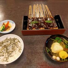 せっかく来たから、八丁味噌を使ったものをと思い、こちらの八千代さんを訪問。メニューはシンプルで、ベースが菜飯田楽定食、そこにお刺身や天ぷらを付けていけば、値段がプラスされて行きます。周りの喧騒とは離れて、しっとりした時間が流れていました。老舗の料亭だけあって、値段はやっぱり高めですが、お吸い物も田楽も美味しかったです。