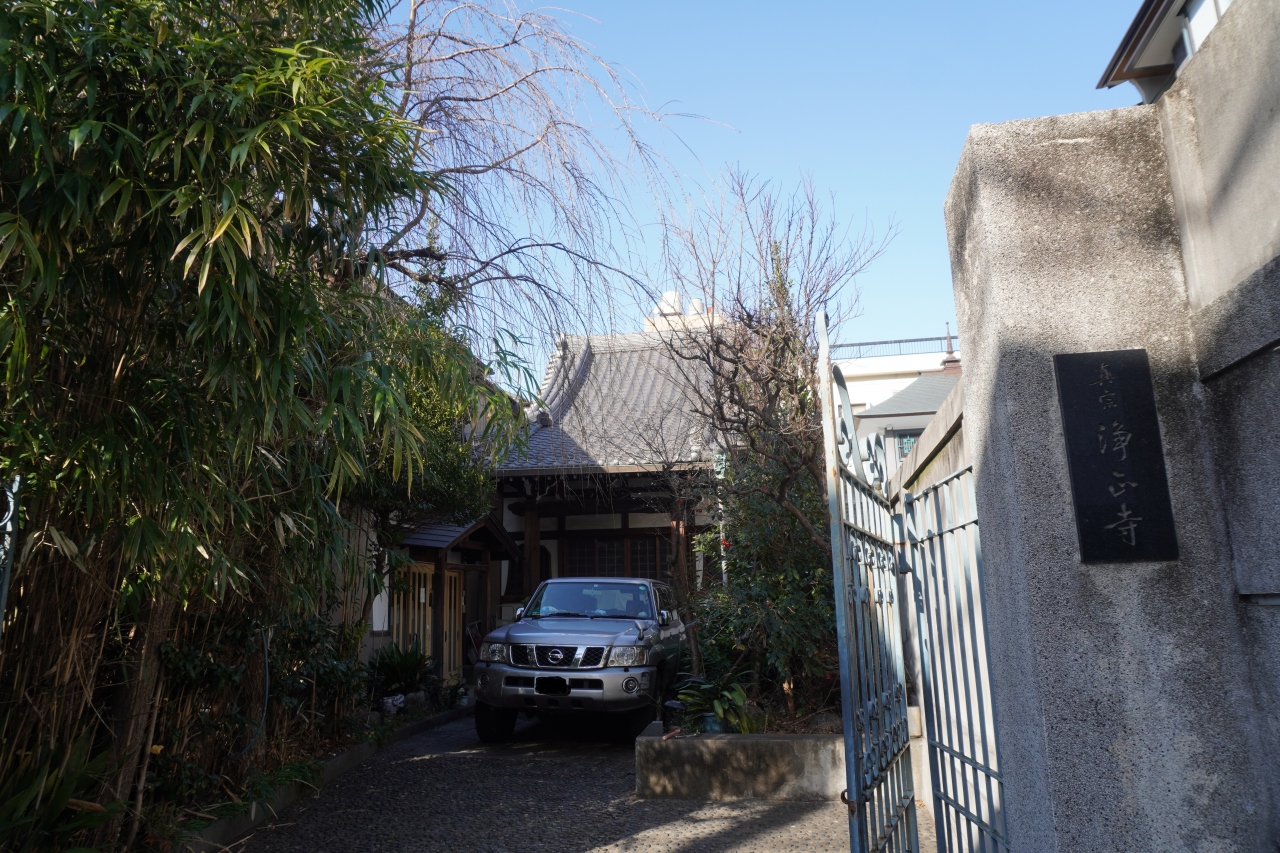 浄正寺は、浅草通りから左衛門橋通りを曲がって北に少し行った裏通り。いくつかのお寺が並んでいます。この寺は、慶長15年(1610年)神田に創建された真宗大谷派のお寺。明暦の大火で焼失し、いったんは浅草本願寺境内へ移転し、その後当地へ。門のところから藪が見えていて、どうかなあ。もうちょっとやりようがあるのではないかと思います。
