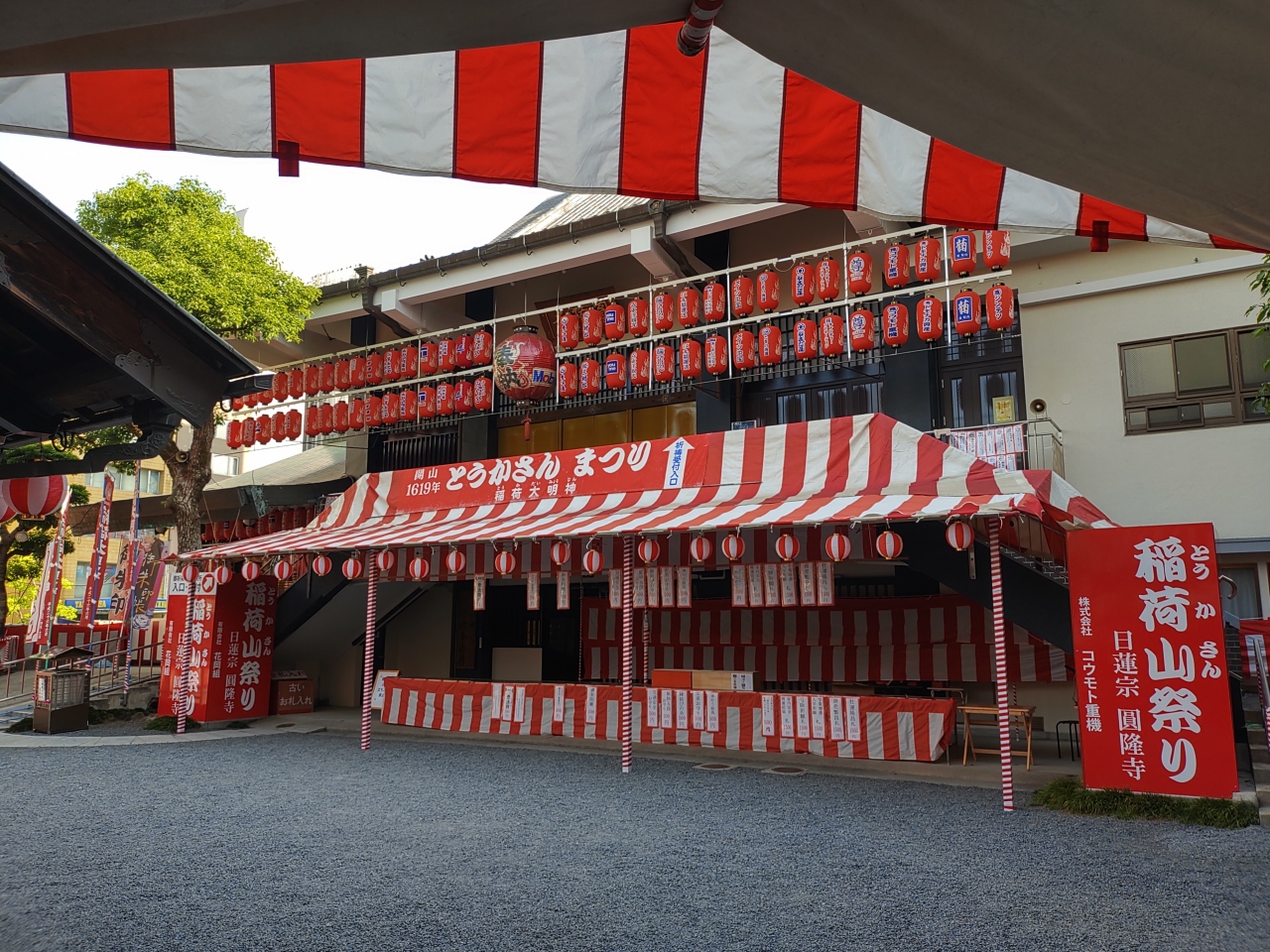 広島市の繁華街近くにある日蓮宗の寺院です。ここを中心として、例年、広島に夏の訪れを告げる風物詩であるとうかさんが開催されます。ちょうど祭りの開催時期に当たっていたこともあり、提灯が吊り下げられているなどとうかさん仕様になっていて、賑やかな印象を受けました。