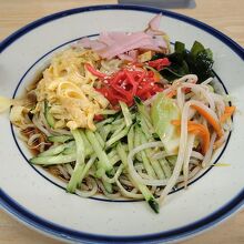 味噌ラーメンがオススメか?と思いつつも、初志貫徹で「冷し中華」をオーダー。醤油か味噌かを聞かれる。今回は醤油味をオーダー。待つこと5分くらい。「これぞノーマルな冷やし中華」。具はハム、錦糸玉子、胡瓜、もやし、わかめ、紅生姜。お皿の横に辛子がついいるのも良い。麺の硬さもちょうどよい。醤油タレは。少し酢が効きすぎているくらい。決しておしゃれでもなんでもないのだけど、日曜日の昼下がり、こういうのがうまい。