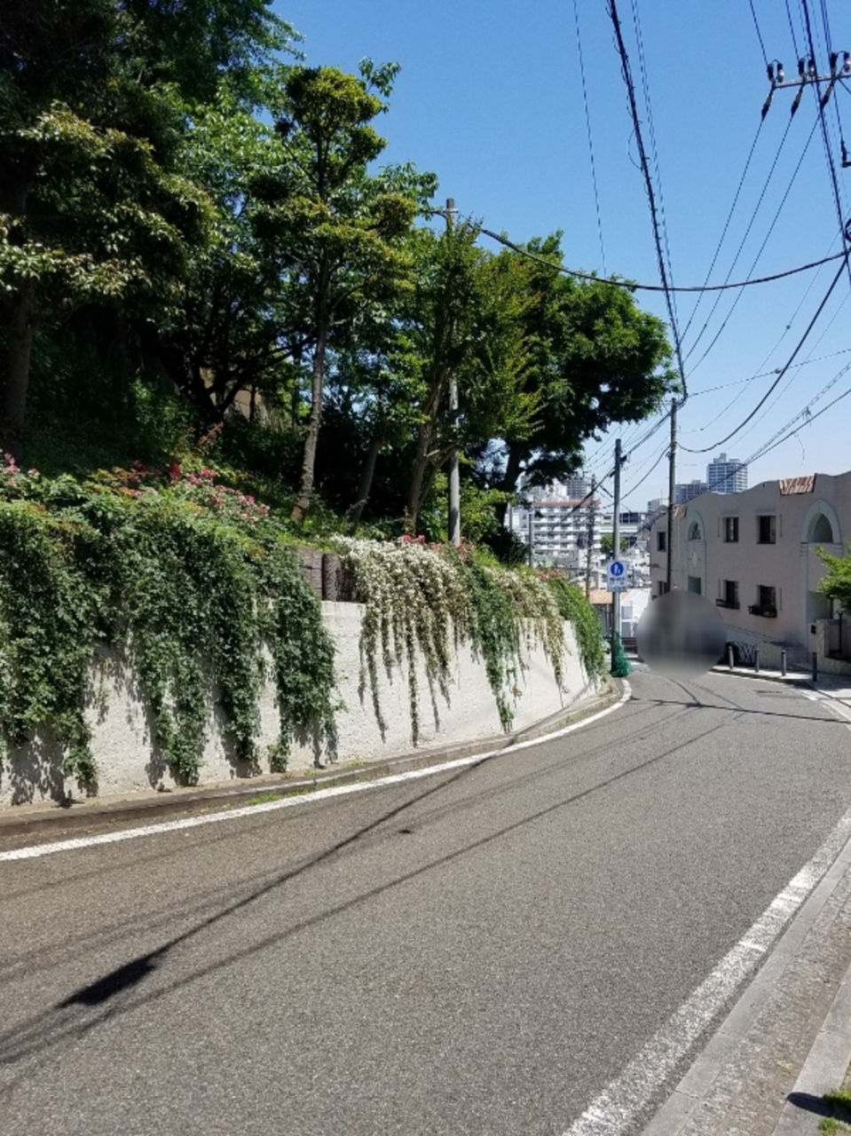 石川町駅前郵便局からこの坂を上りました。結構急な坂ですが大きくカーブする辺りで緑の木々や色とりどりの草花がきれいに整備されているのが見えてくると疲れも吹き飛びまた。やがてブラフ18番館などへの入口となる階段に辿り着きました。