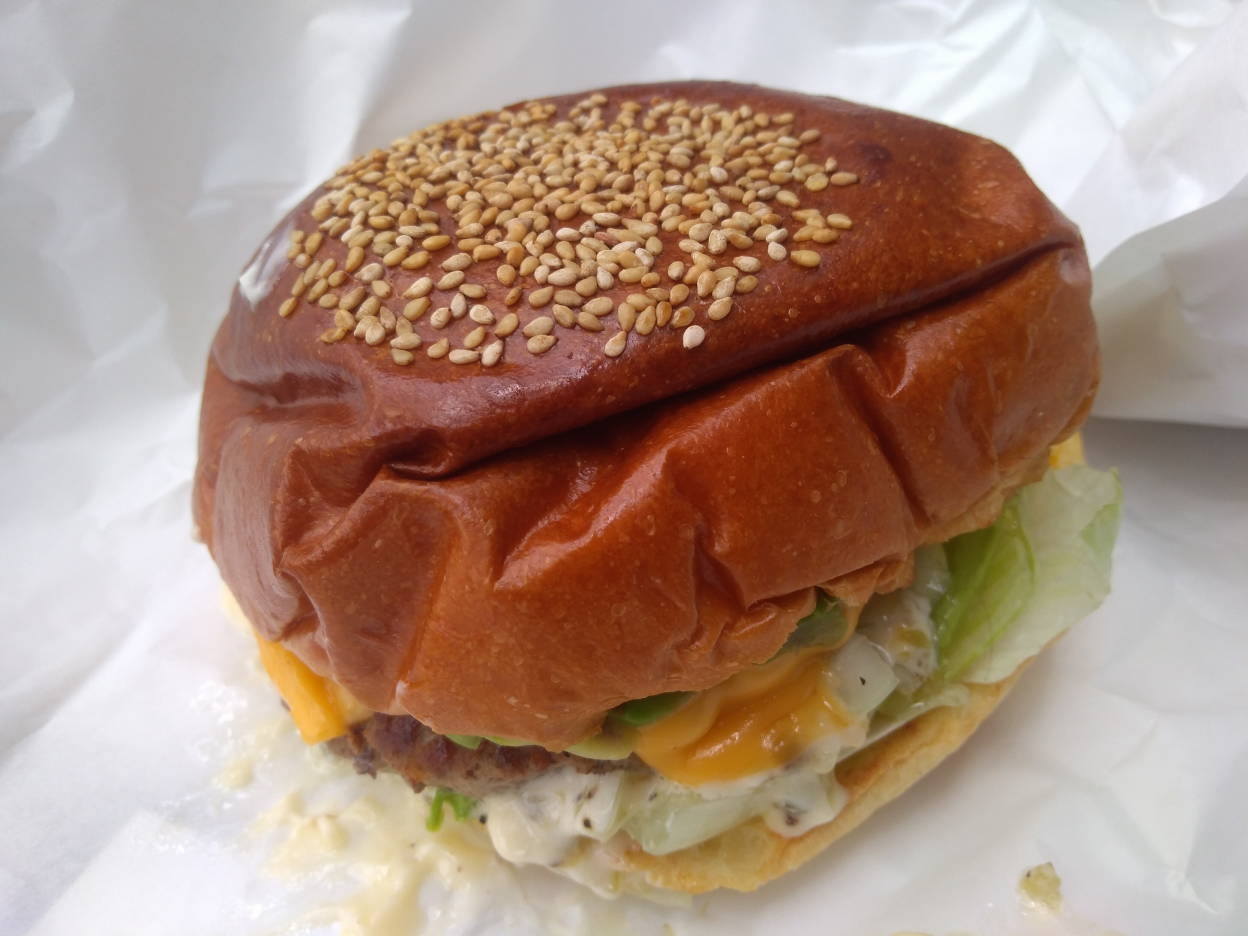 「コディーズ」でハンバーガーをいただくことにしました。「ベーコンチーズバーガー」1674円に「アボカドトッピング」+281円を、11時開店の10分前に電話で注文し、最短の11時15分にお店で受け取りました。GoToEatの電子クーポンが使えました。さっそく冷めないうちに「アメリカ山公園」でいただきました。「ベーコンチーズバーガー」の「アボカドトッピング」は約2000円になりますが、ソースがたっぷりで味は良かったです。ずっしり重く、ポテトも付いていて1つでしっかりお腹がいっぱいになりました。
