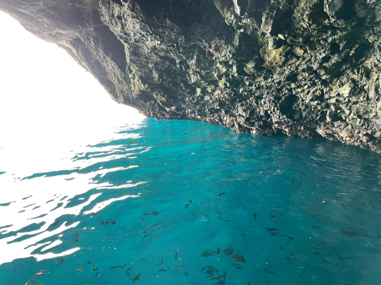 秘境と言われるとおり、絶壁を眺めながらグラスボートで海鳥や滝、青の洞窟などを見学。